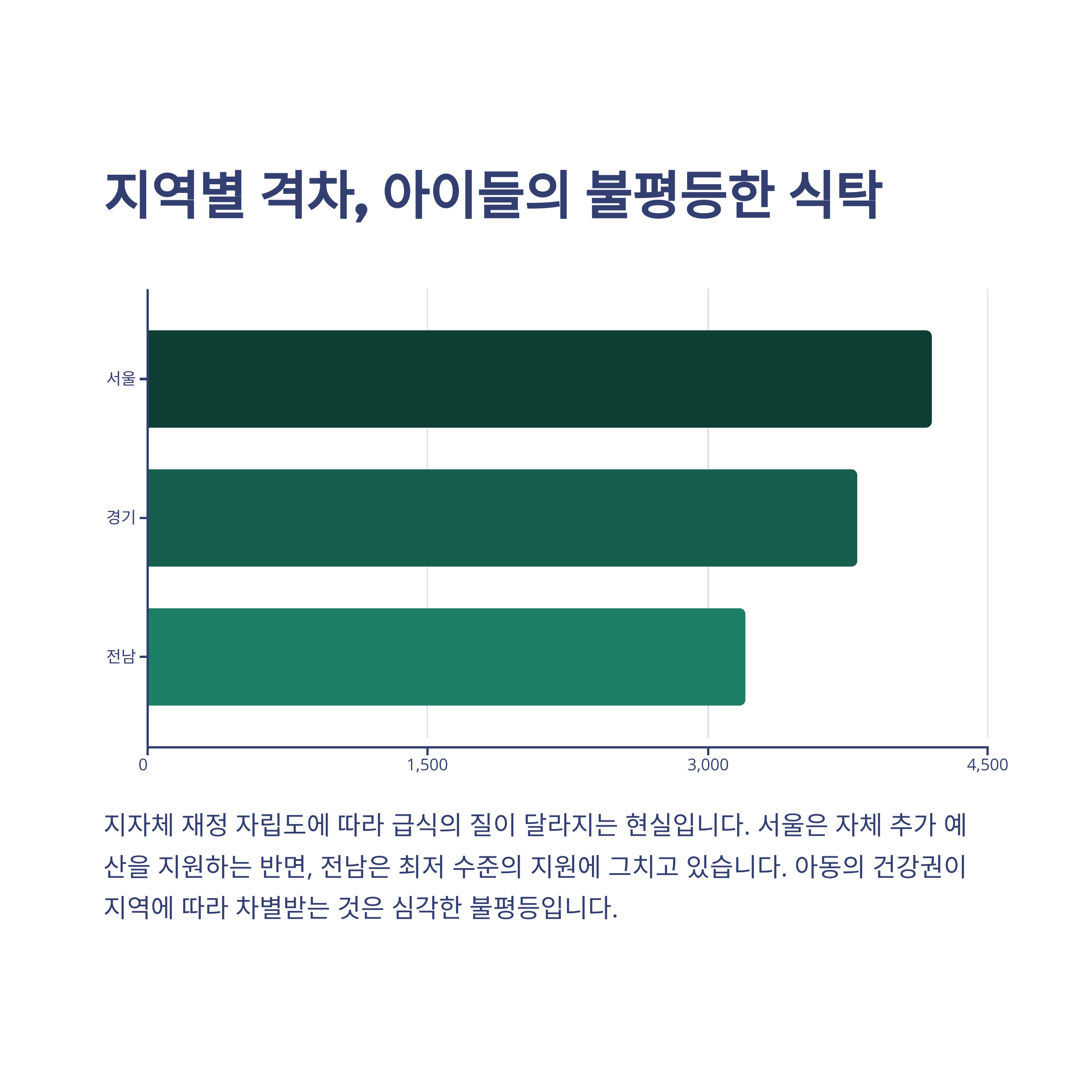 아래 표는 지역별 급식지원 예산 차이를 정리한 것입니다.