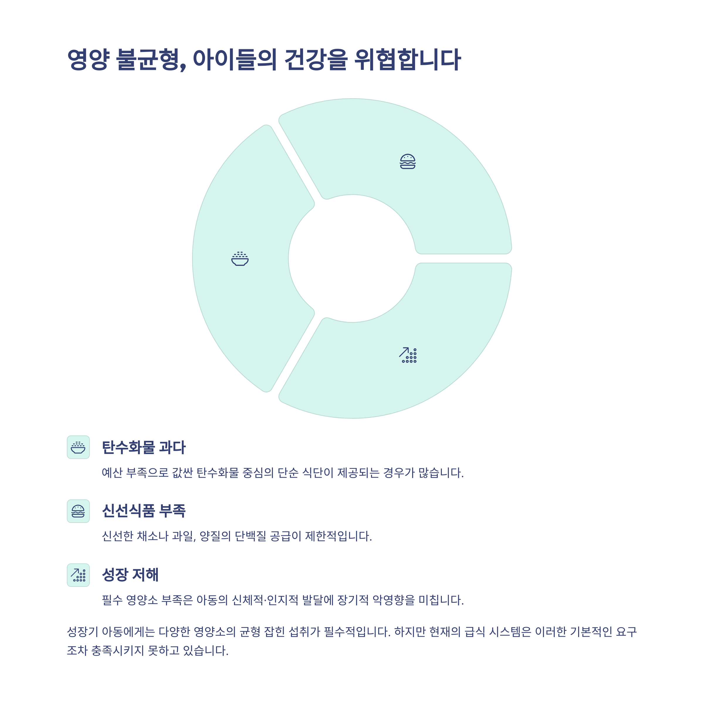 이로 인해 아이들의 영양 불균형 문제가 장기적으로 우려되고 있습니다.