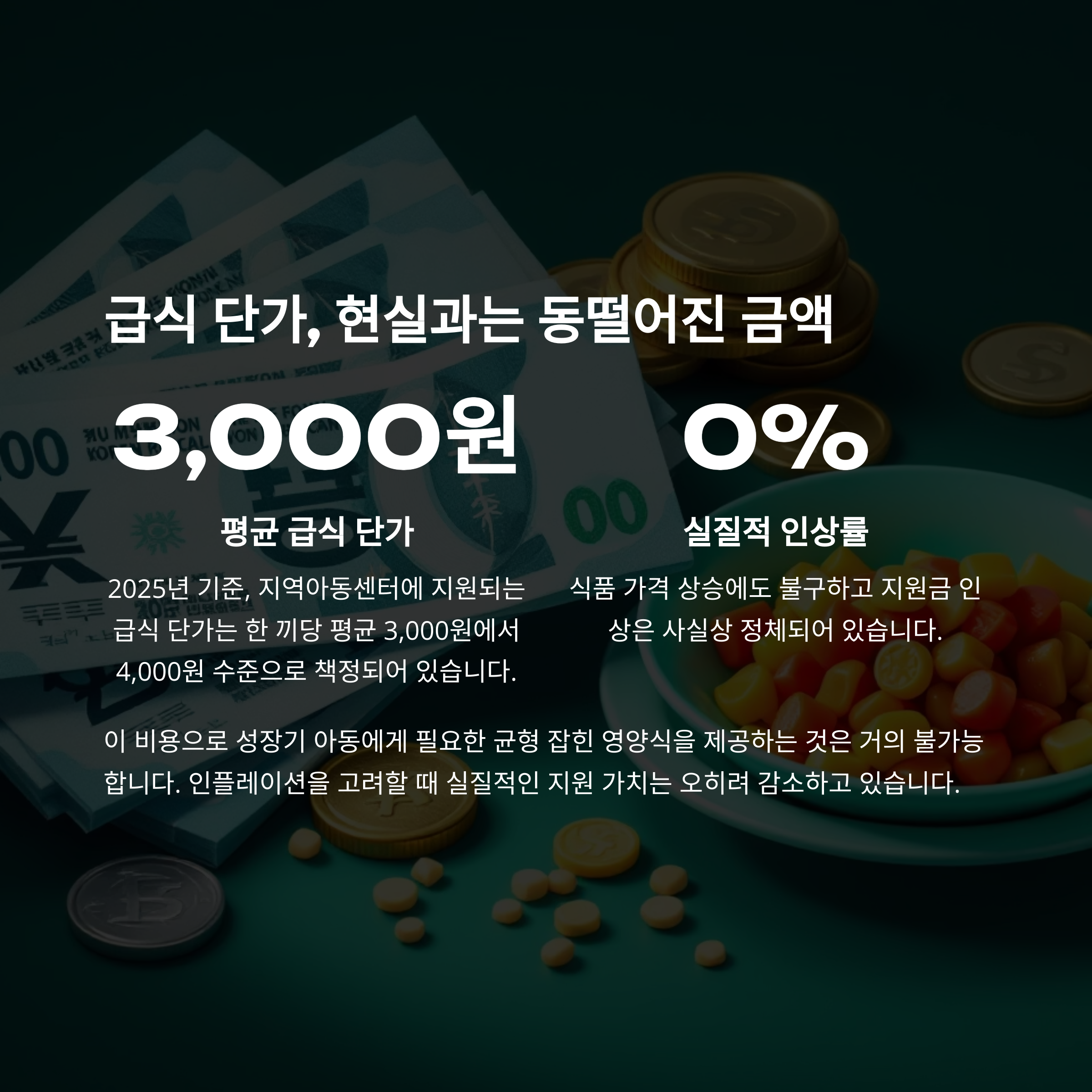 이로 인해 아이들의 영양 불균형 문제가 장기적으로 우려되고 있습니다.