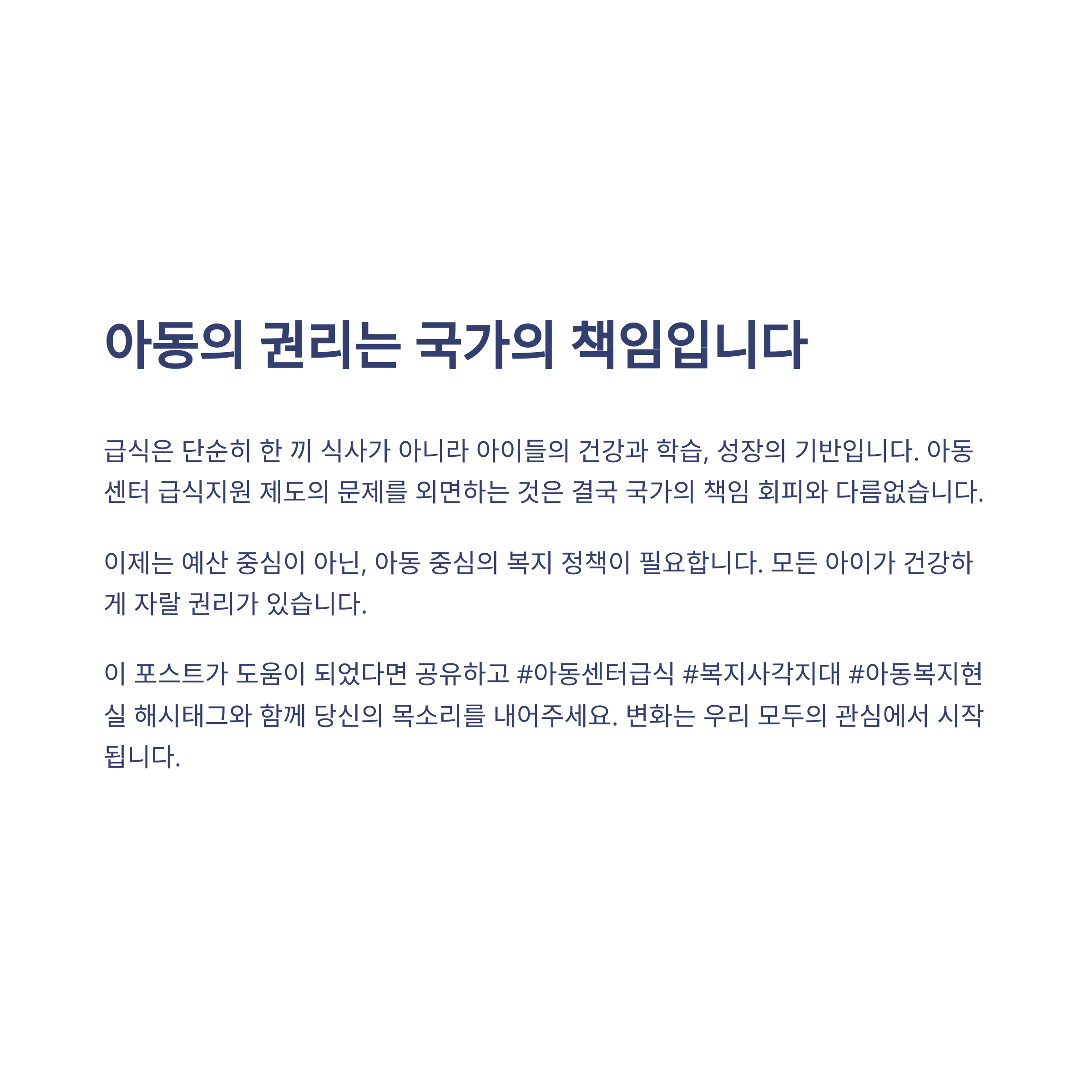 이제는 예산 중심이 아닌, 아동 중심의 복지 정책이 필요합니다.