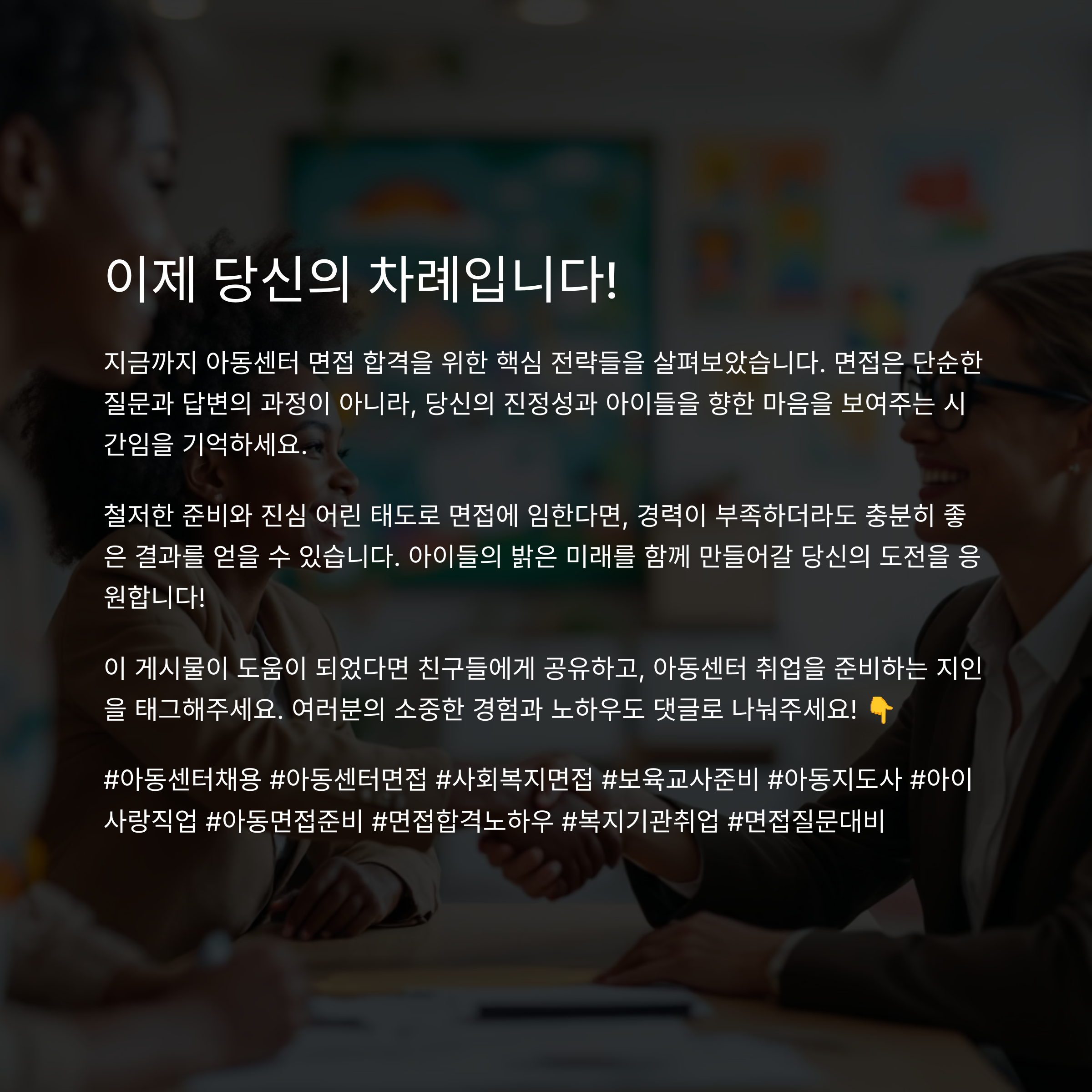 아동센터 면접을 준비하신다면 단순히 경력과 자격증만으로는 부족합니다.
