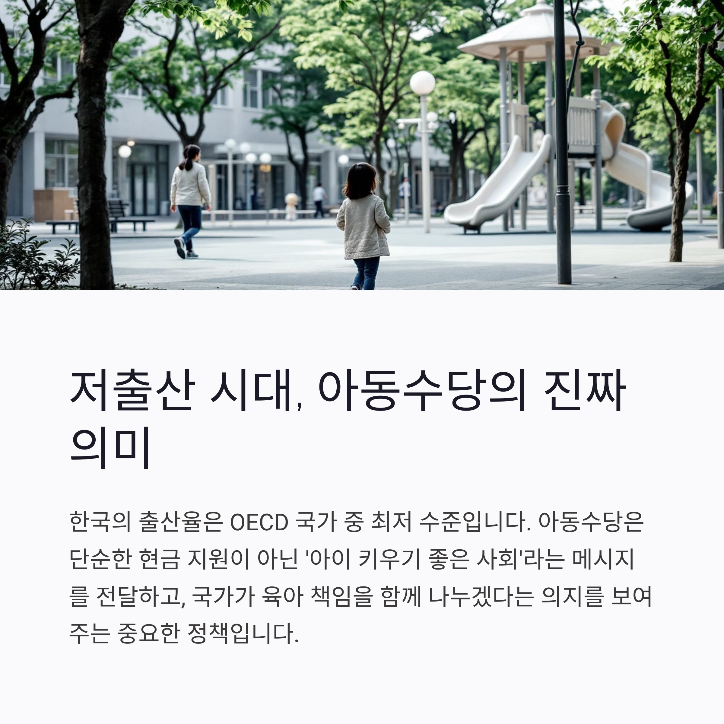 이런 상황에서 아동수당은 단순한 현금 지원을 넘어