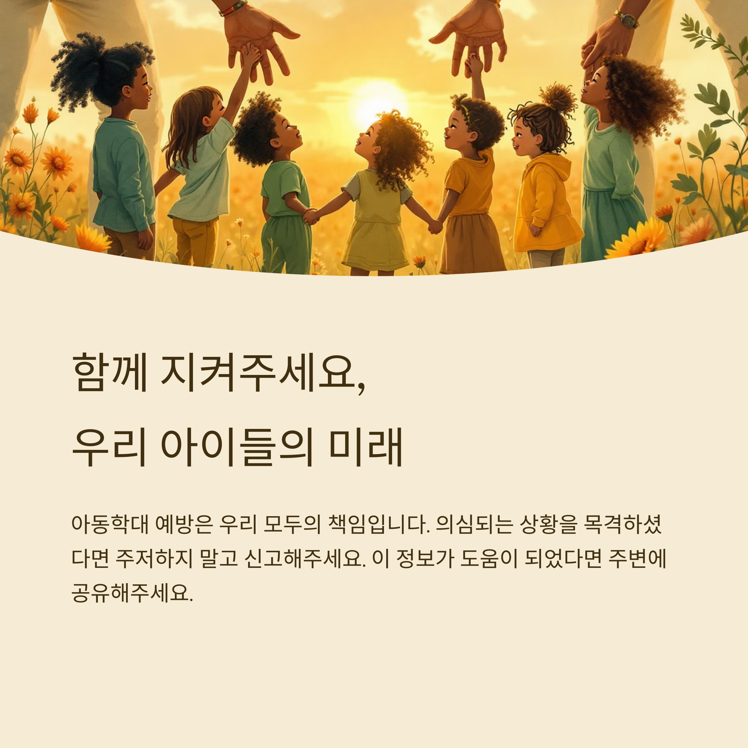 아동학대 예방교육은 단순한 보호가 아니라, 아동의 권리를 존중하고 실현하는 실천입니다.