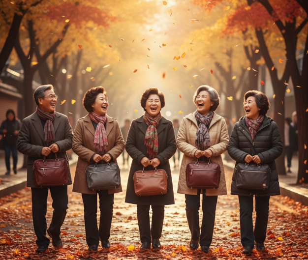 해질녘 친구들과 웃으며 퇴근하는 활기찬 시니어들