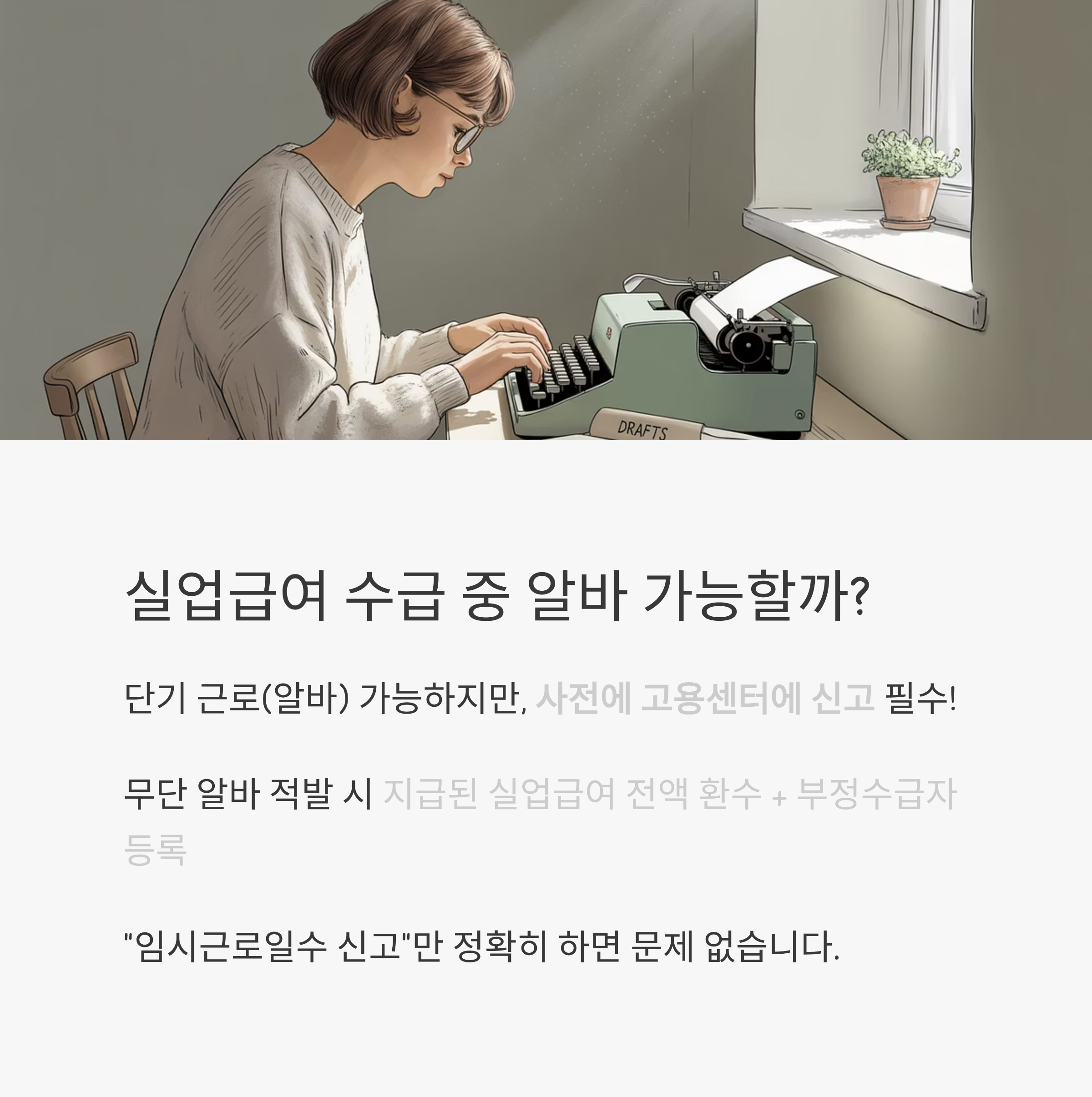 단기 근로(알바)를 해도 괜찮지만,