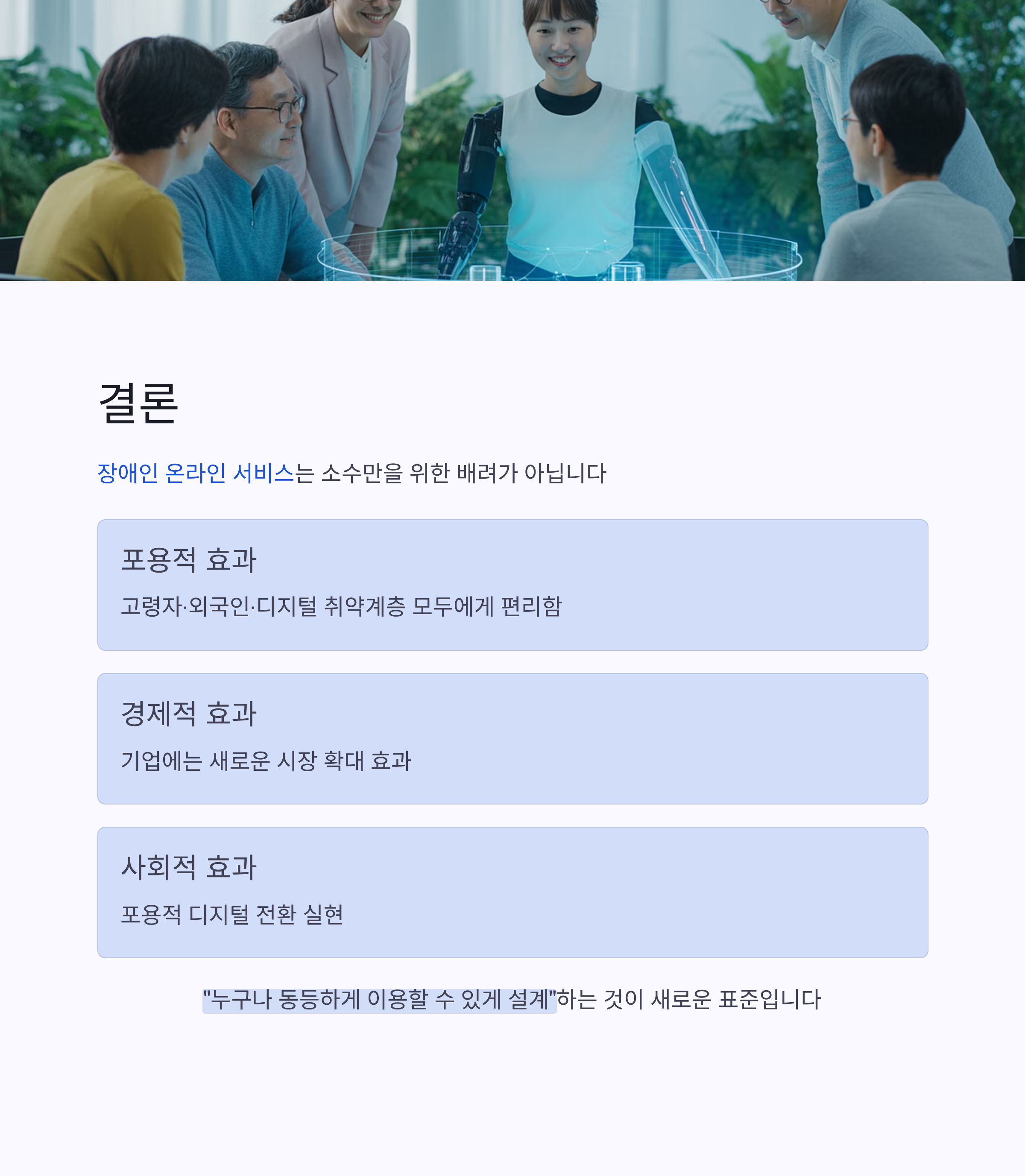 👉 결국 장애인 온라인 서비스는 글로벌 사회에서 표준이 되고 있습니다.