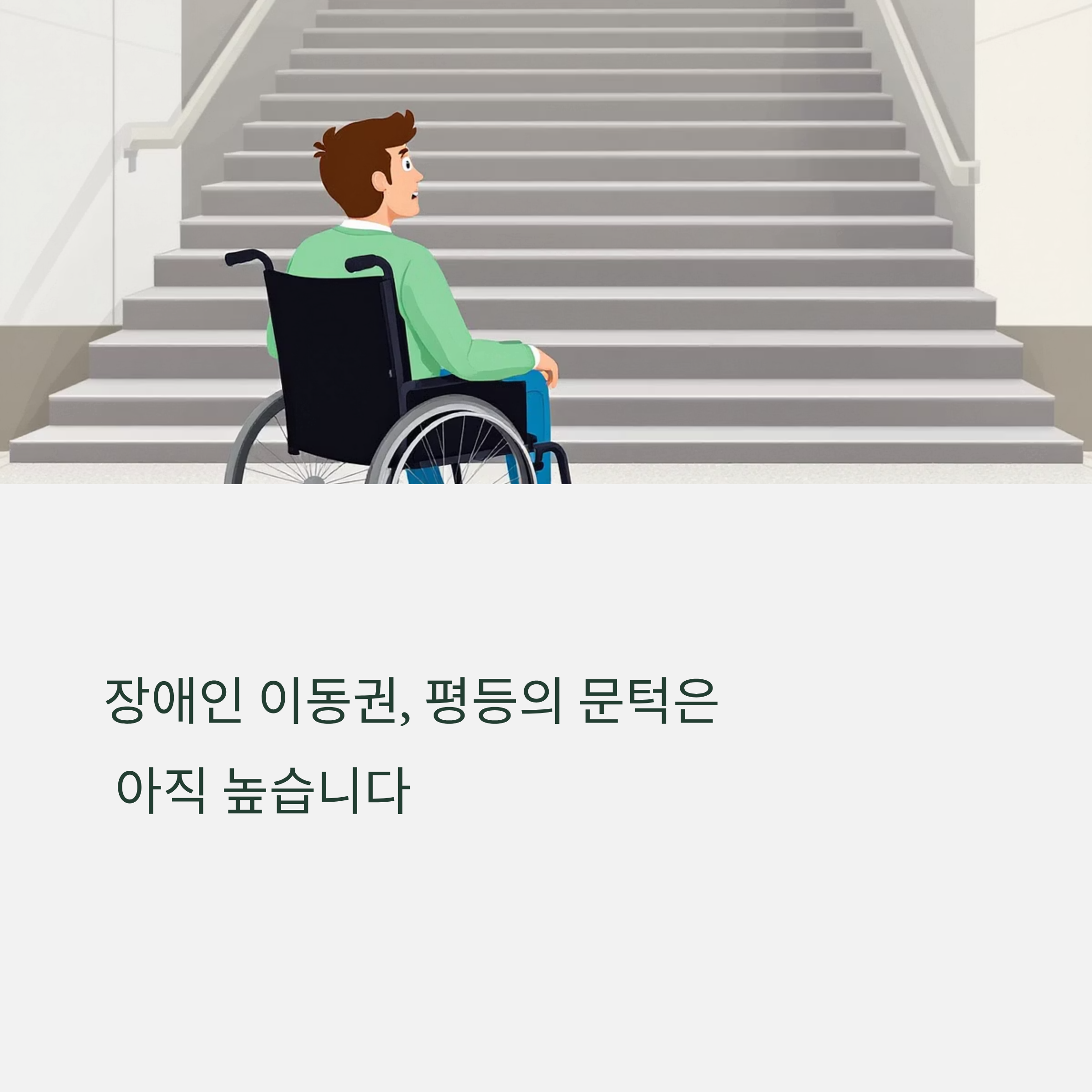 이해와 배려, 그리고 인식 개선이 필수입니다. 휠체어 이용자를 위한 공간을