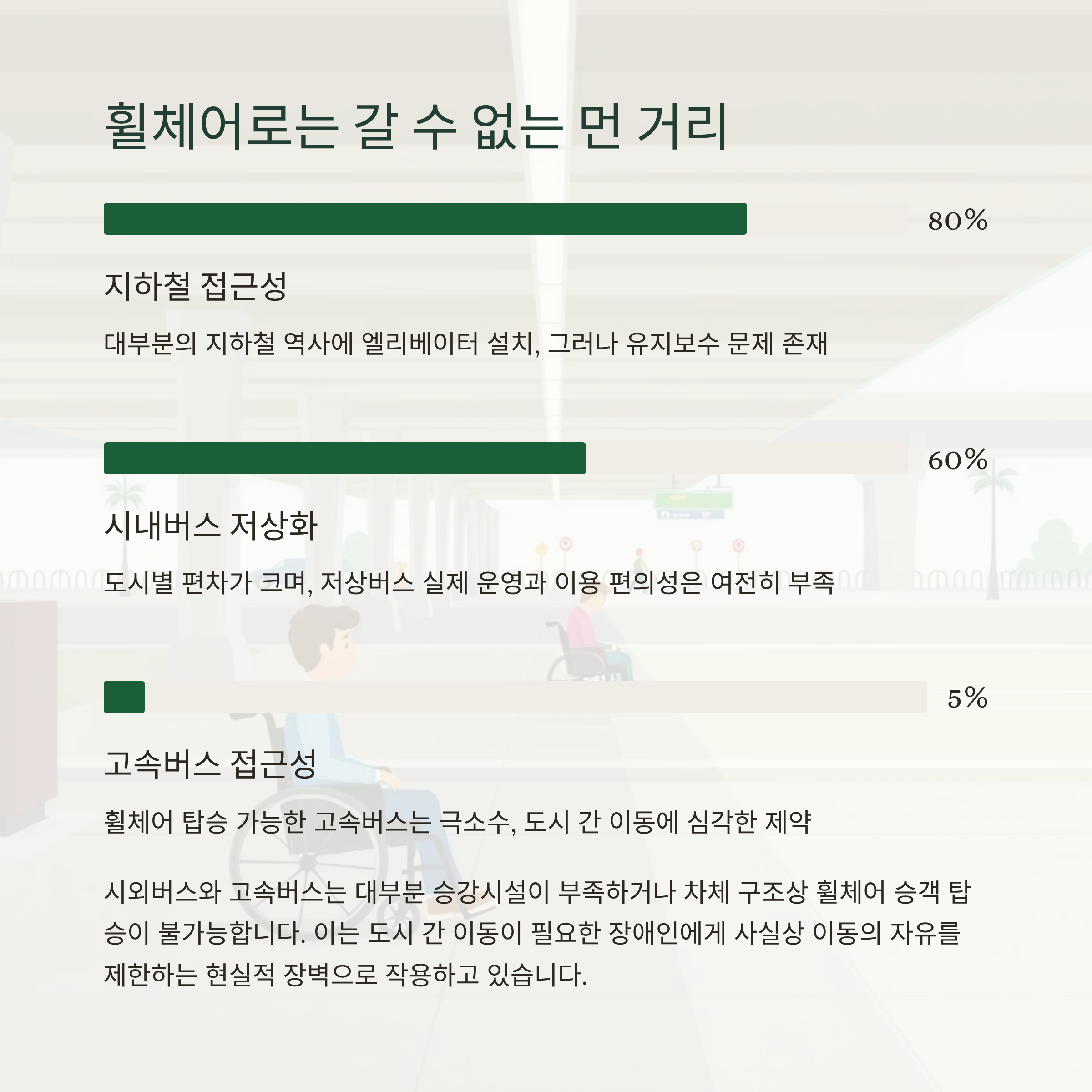실제 현장에서 장애인이 겪는 불편함은 여전합니다. 휠체어 사용자의 대중교통