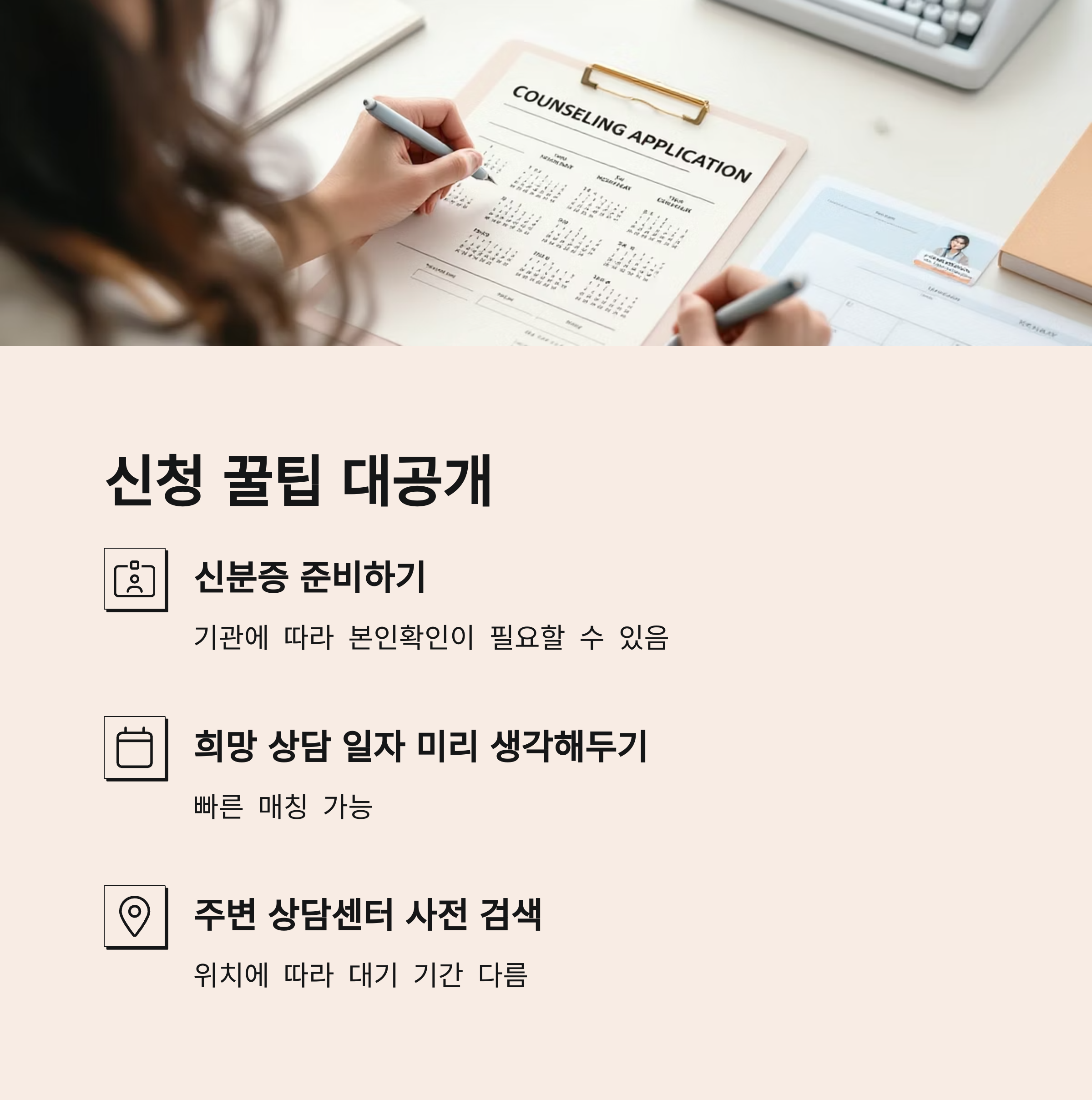- 희망 상담 일자 미리 생각해 두기: 빠른 매칭 가능