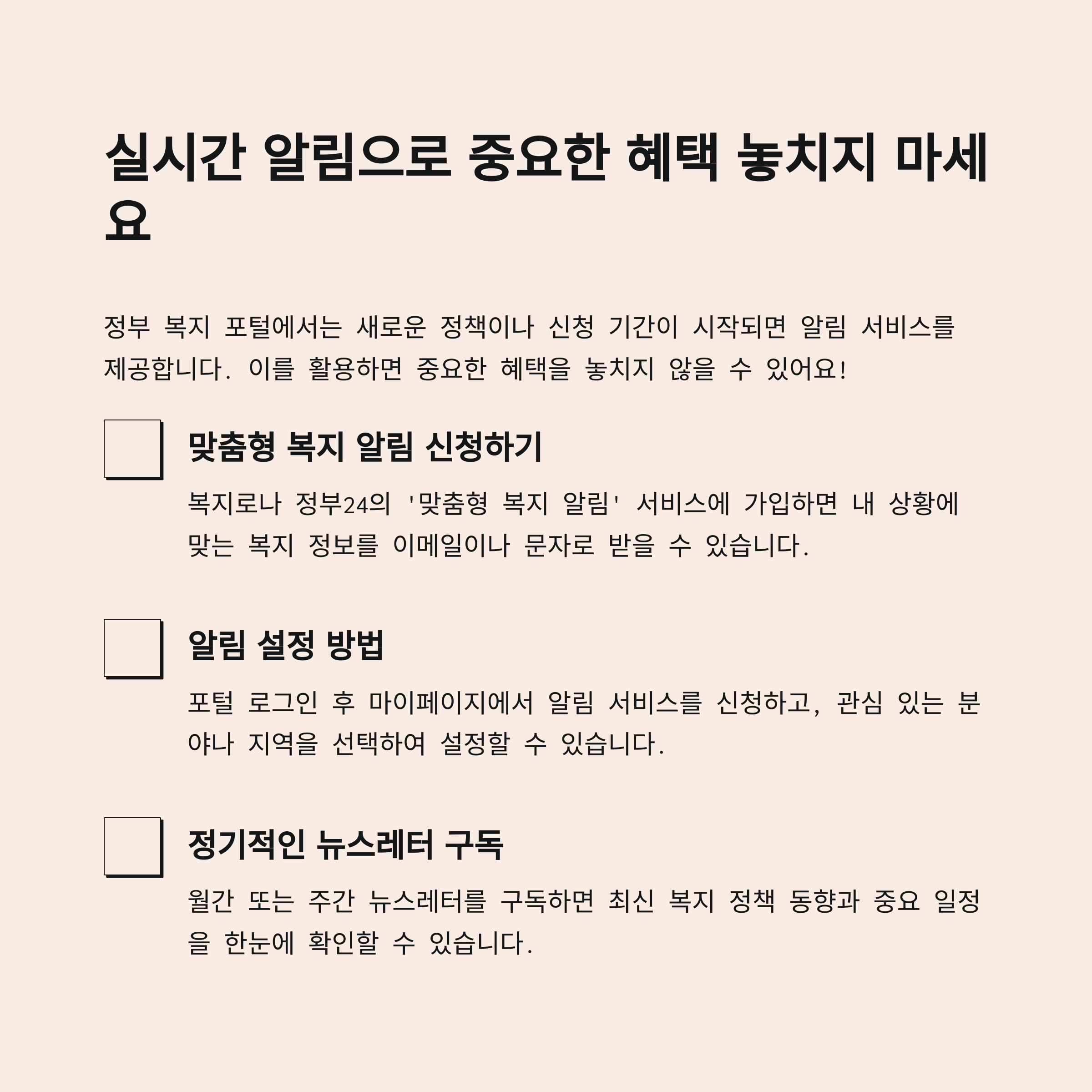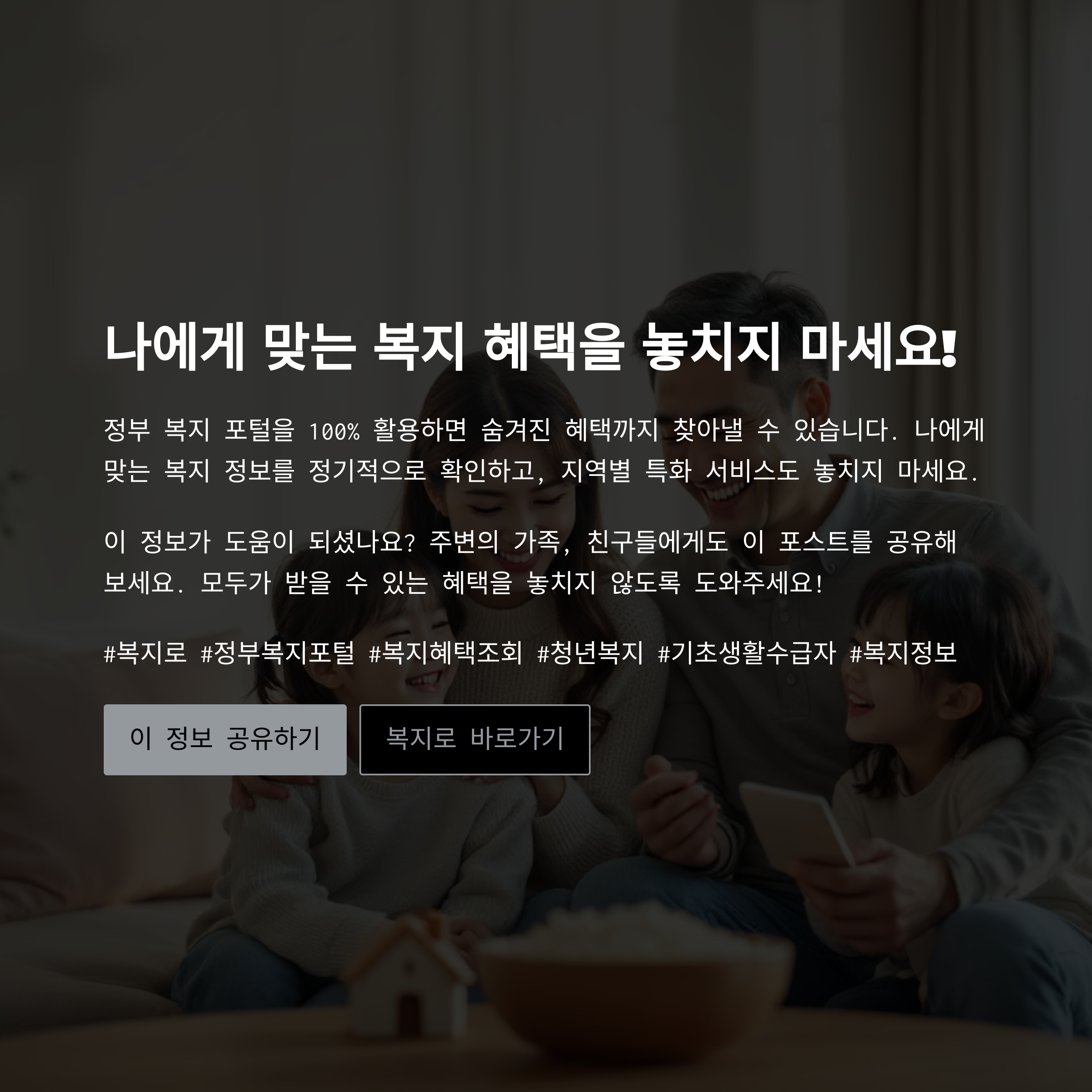 신청하면, 내 연령과 상황에 맞는 복지 정보를 선별적으로