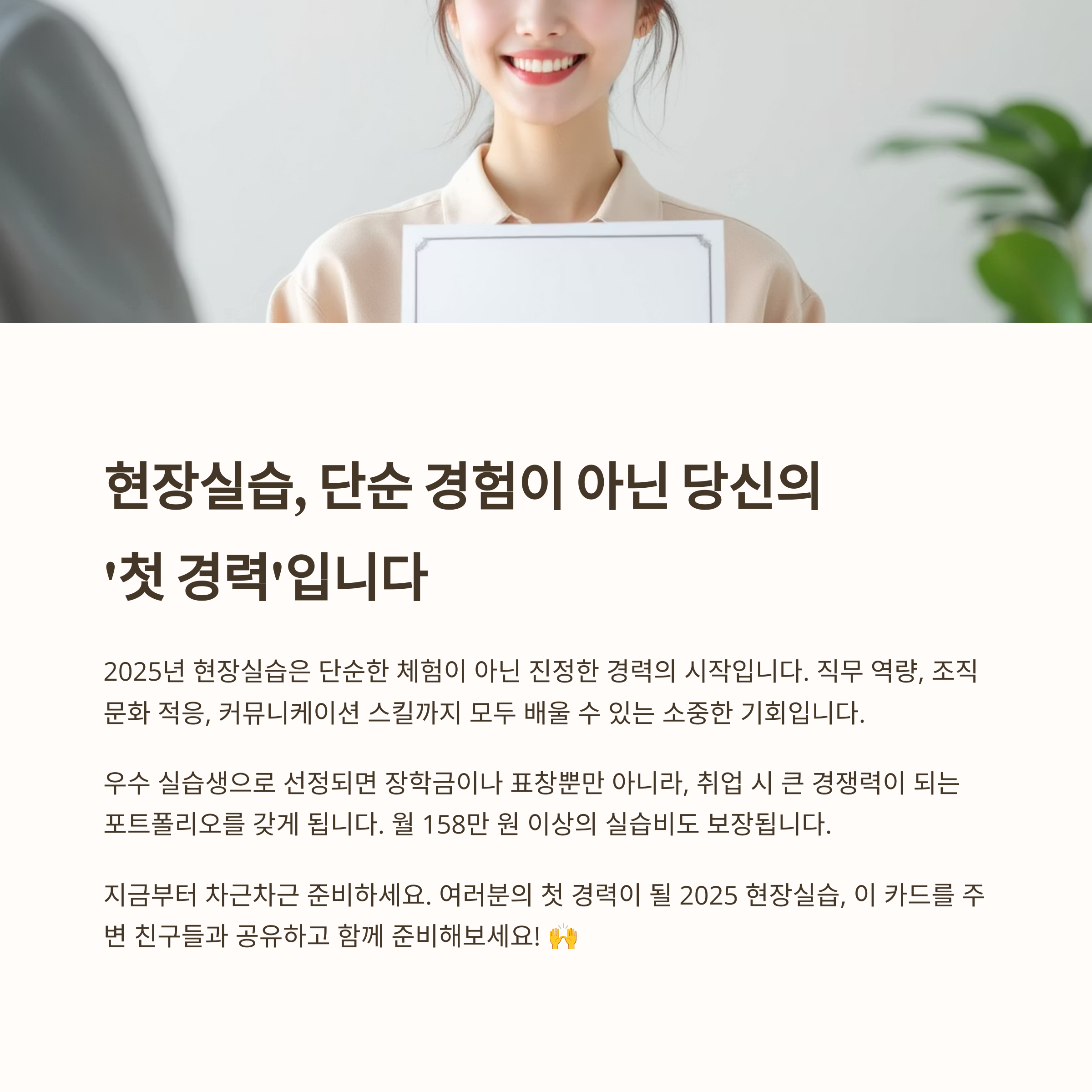 2025년 현장실습은 단순한 일회성 체험이 아닙니다.