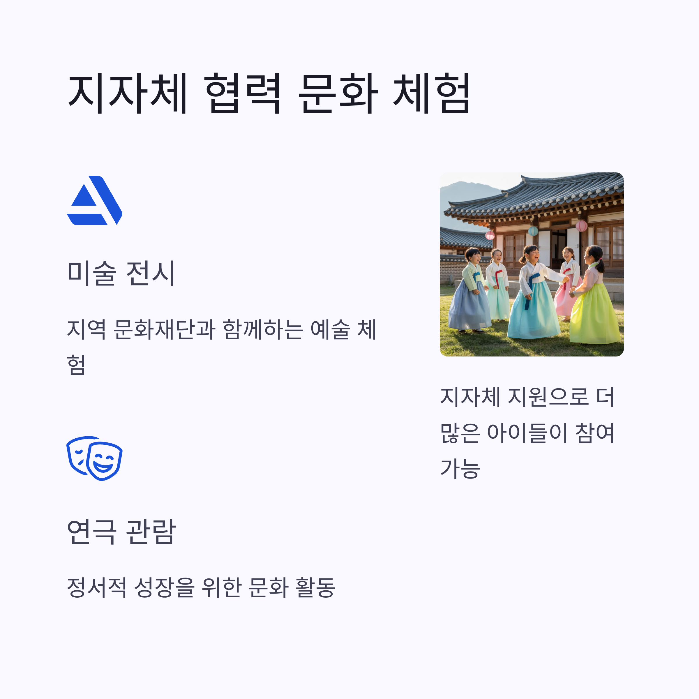 지역 문화재단이나 시청과 손잡고 다양한 체험 활동을 제공하는 사례도 있어요. 미술 전시, 연극 관람, 지역 축제 참여 등 아이들이 일상에서는 경험하기 힘든 문화를 접하면서 정서적 성장을 할 수 있죠. 특히 지자체 지원으로 비용 부담이 적어 더 많은 아이들이 참여할 수 있어요.