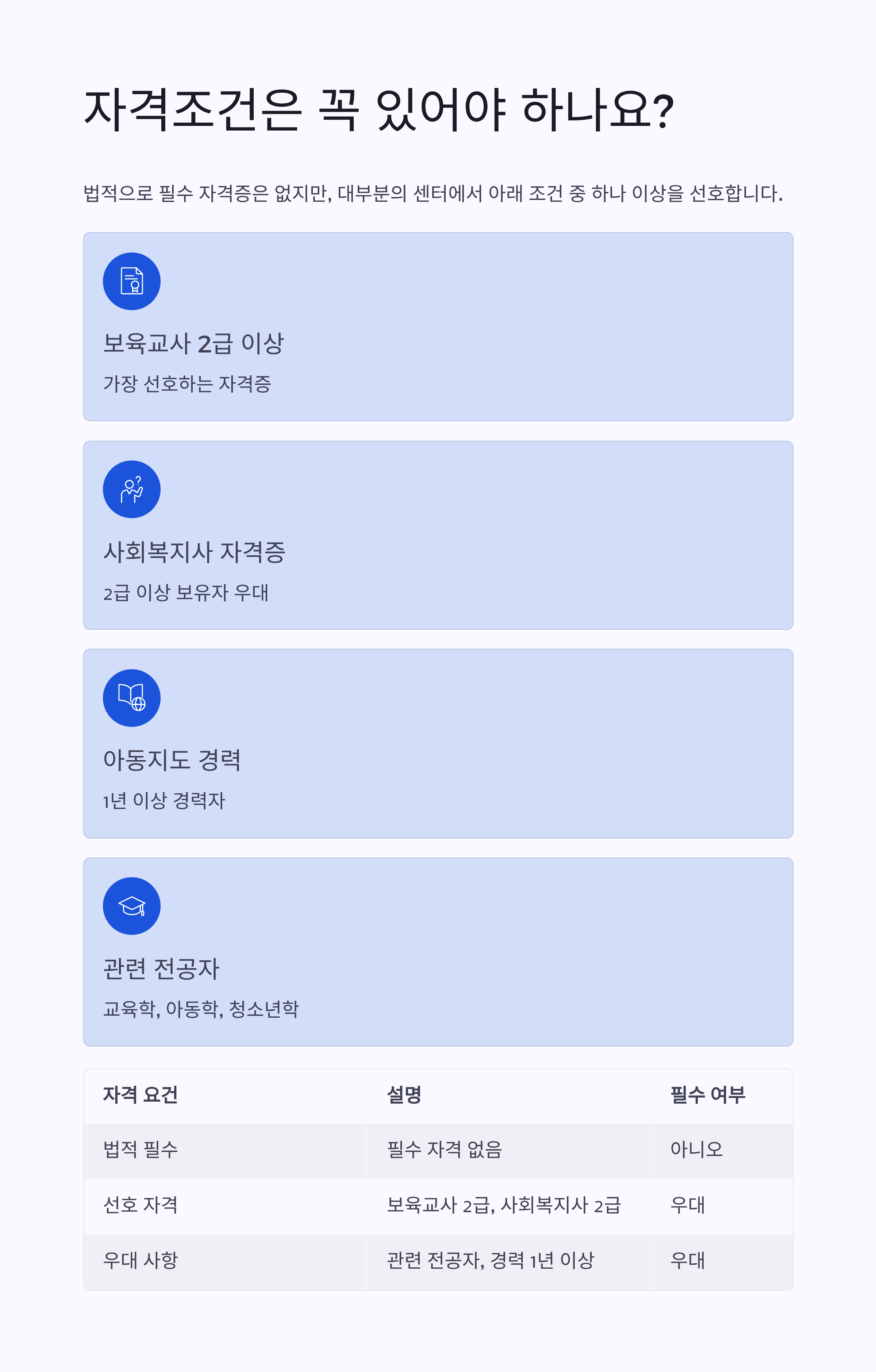 | 선호 자격 | 보육교사 2급, 사회복지사 2급 이상 |