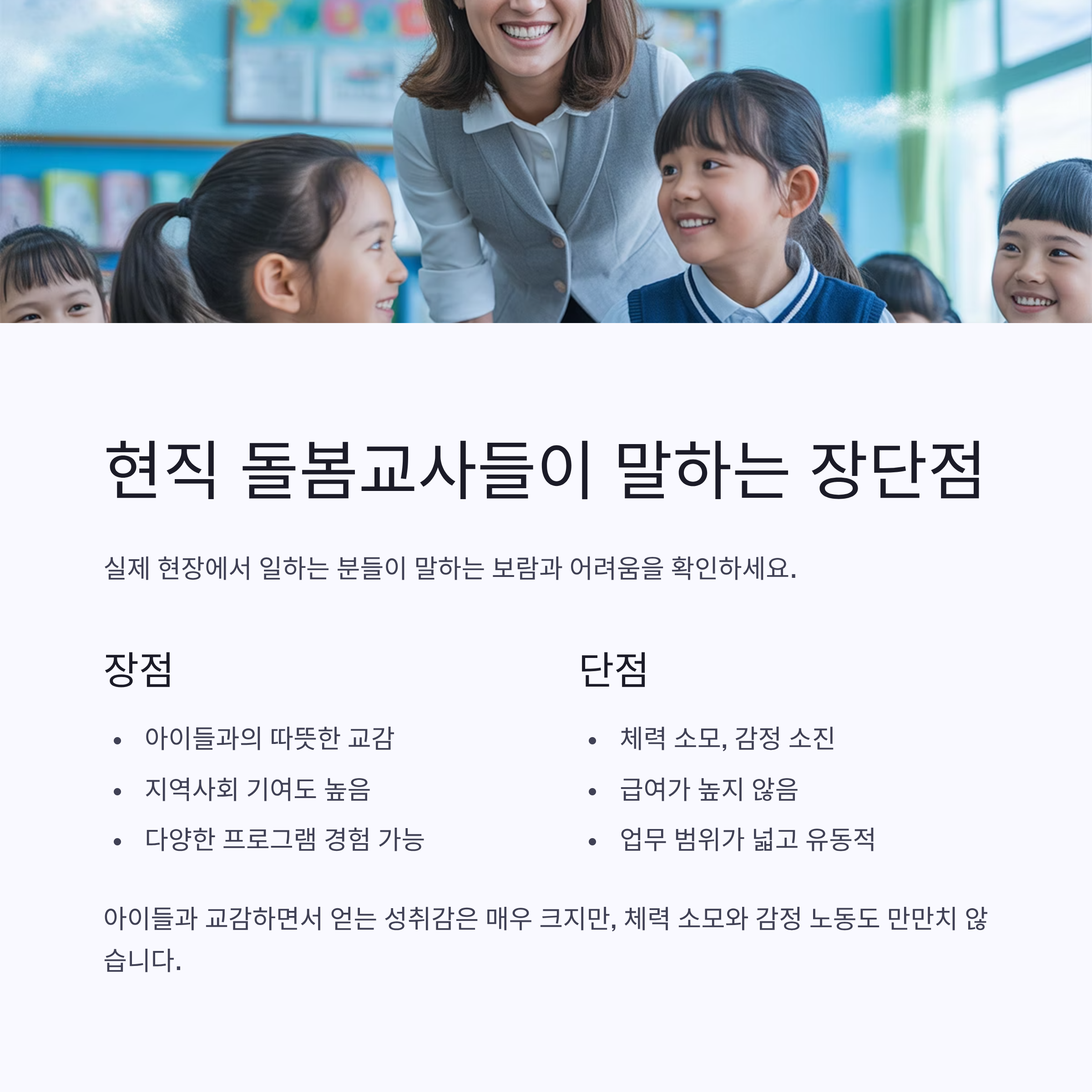 현직 돌봄 교사들이 말하는 장단점