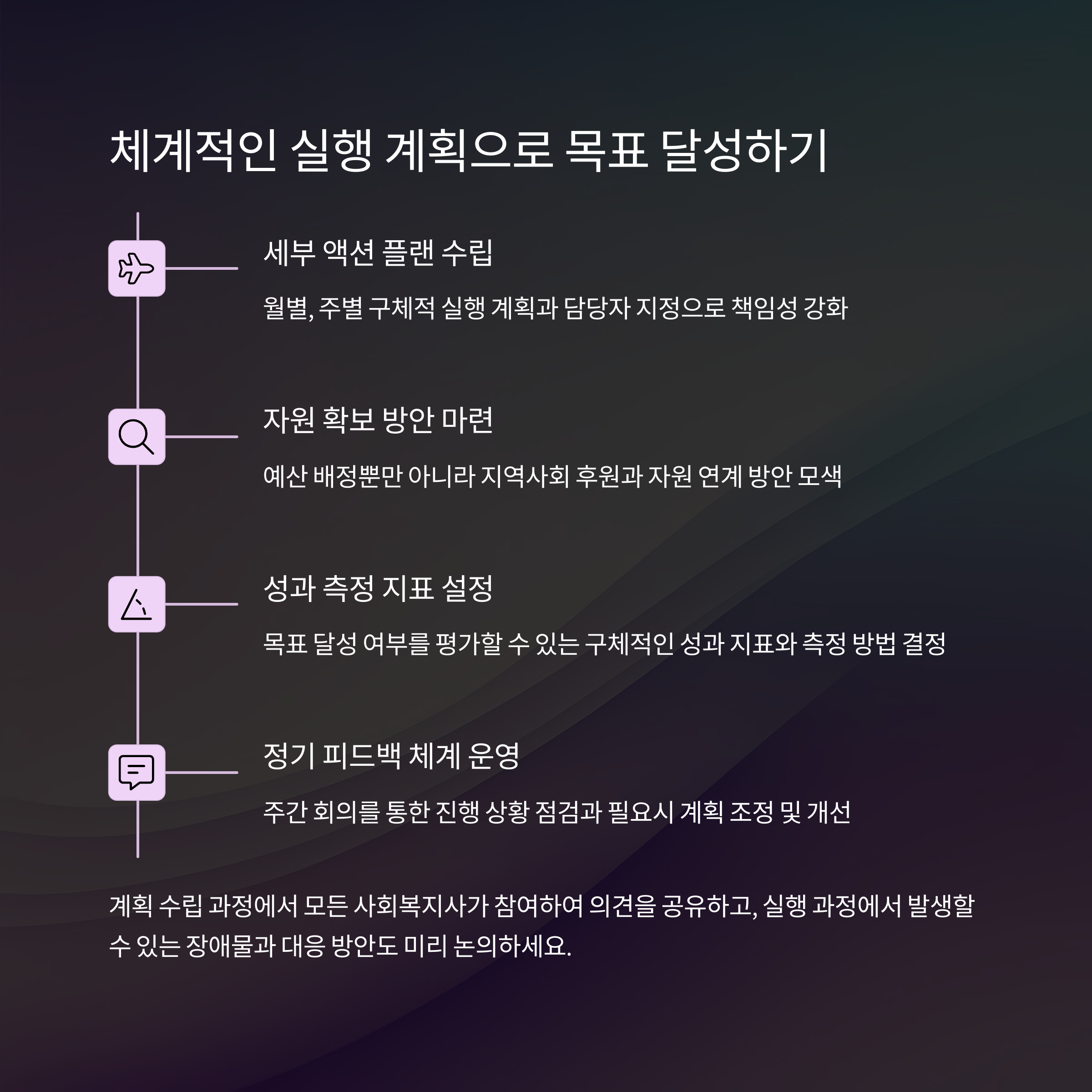 효과적인 회의 운영을 위해 공통 목표와 세부 실행 계획을 명확히 설정하는 것이 필수입니다.