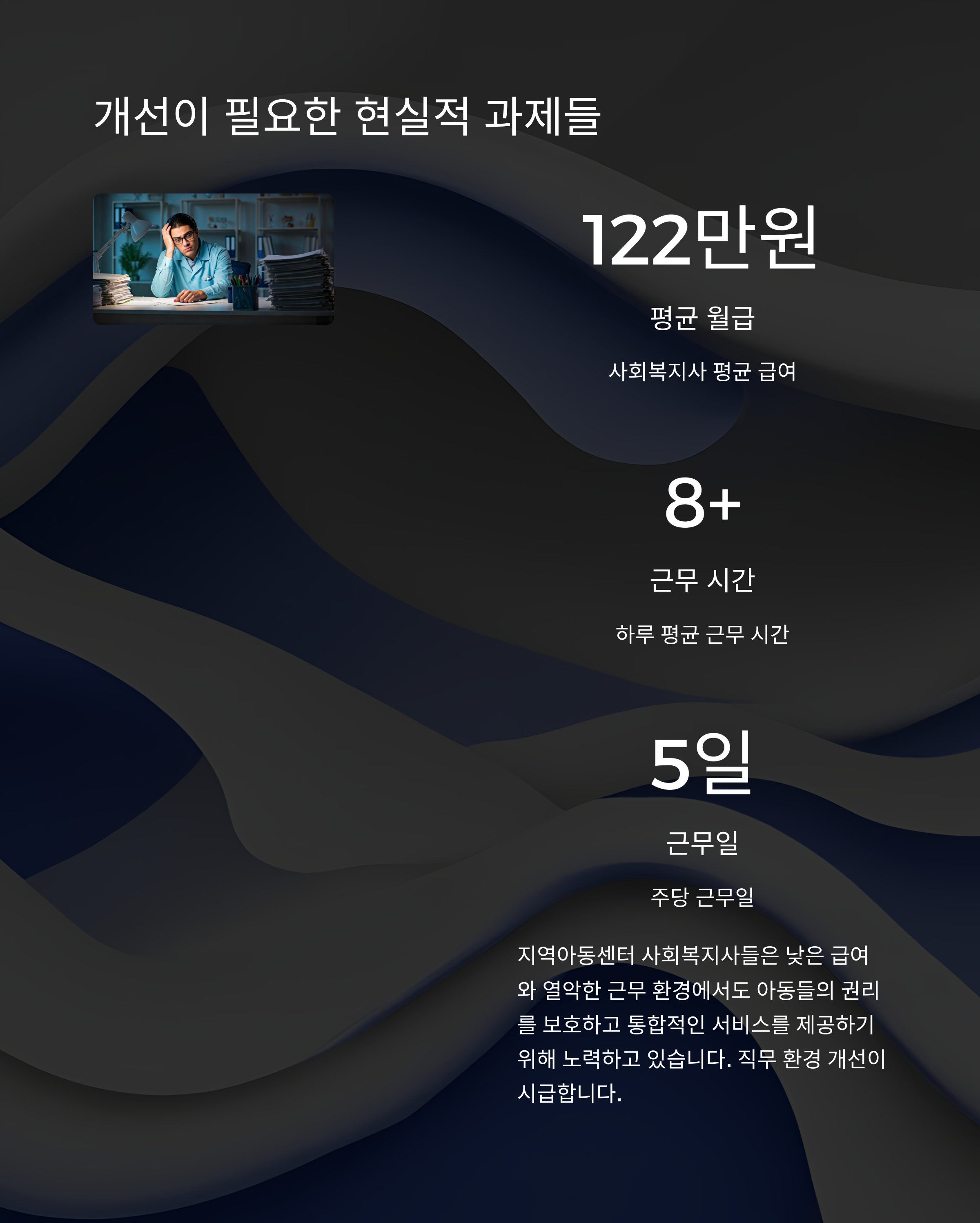 사회복지사 처우 개선은 지역아동센터의 중요한 과제입니다.