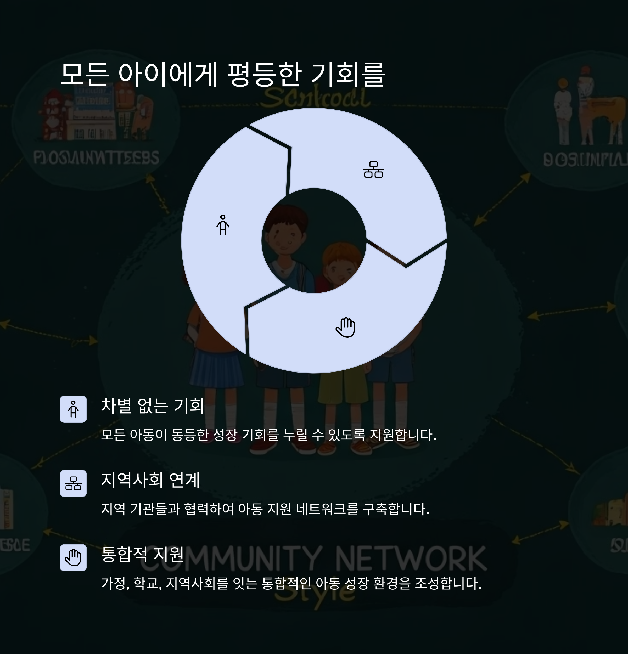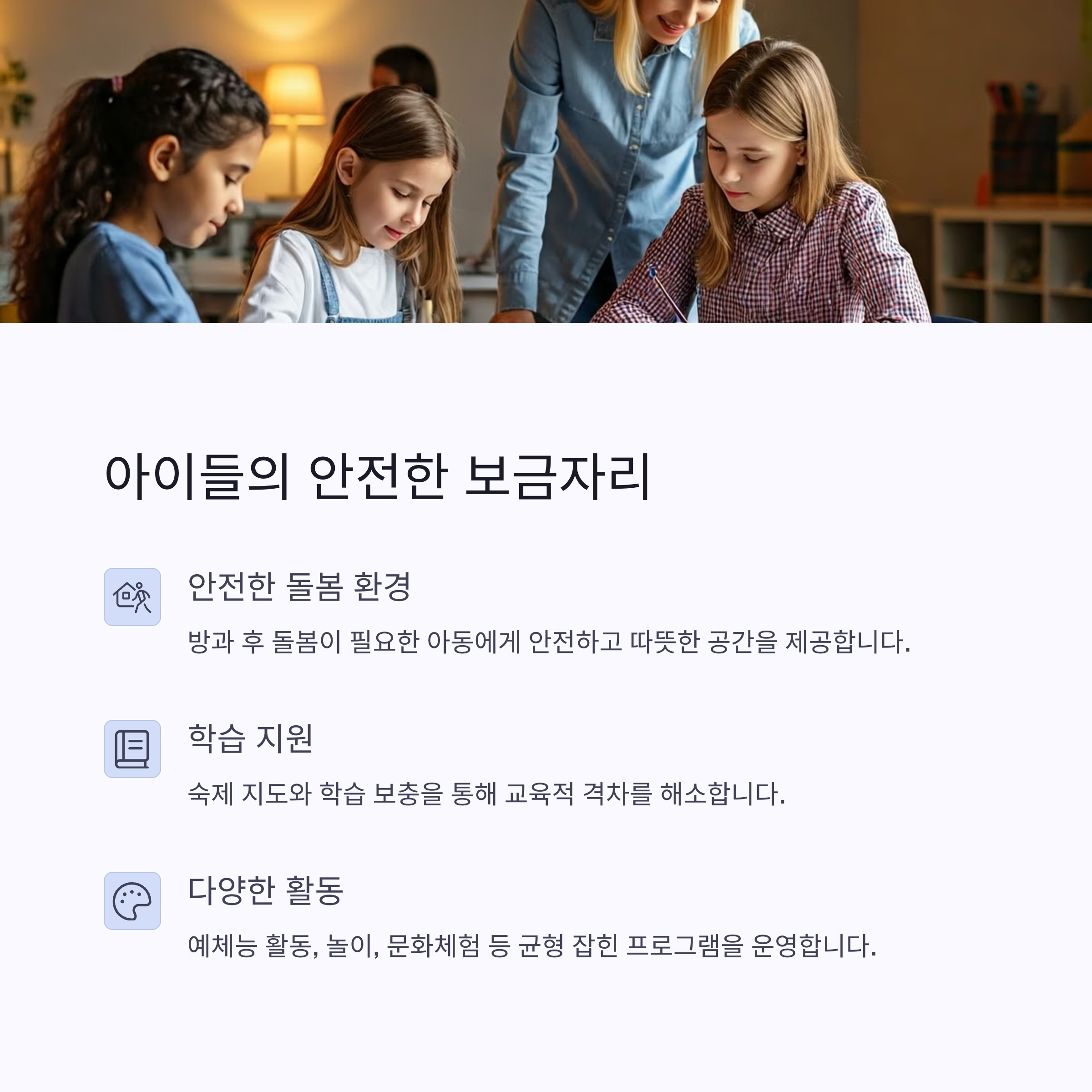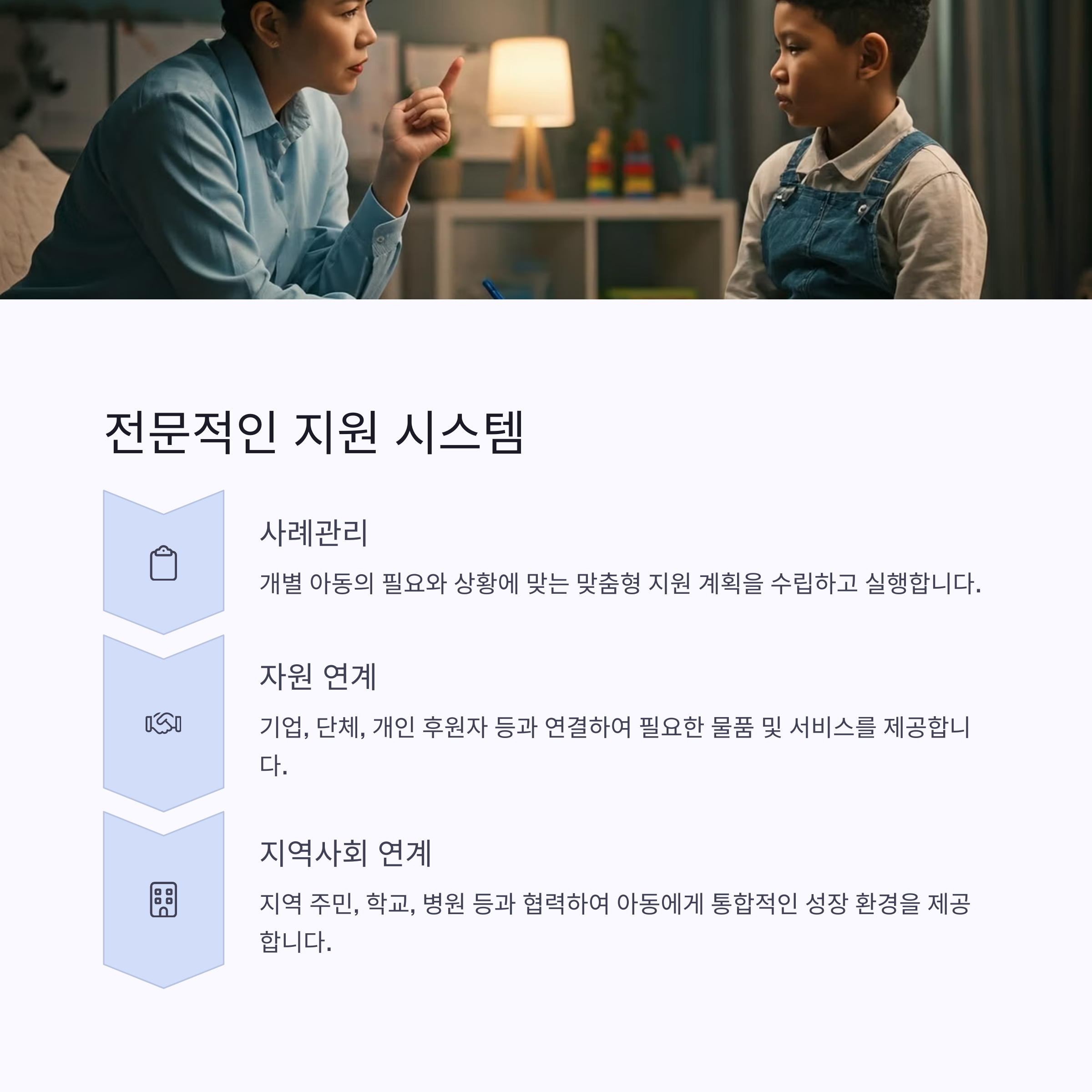 지역아동센터는 아동의 보호, 교육 및 건전한 성장 지원을 위해 중요한 역할을 하고 있습니다.