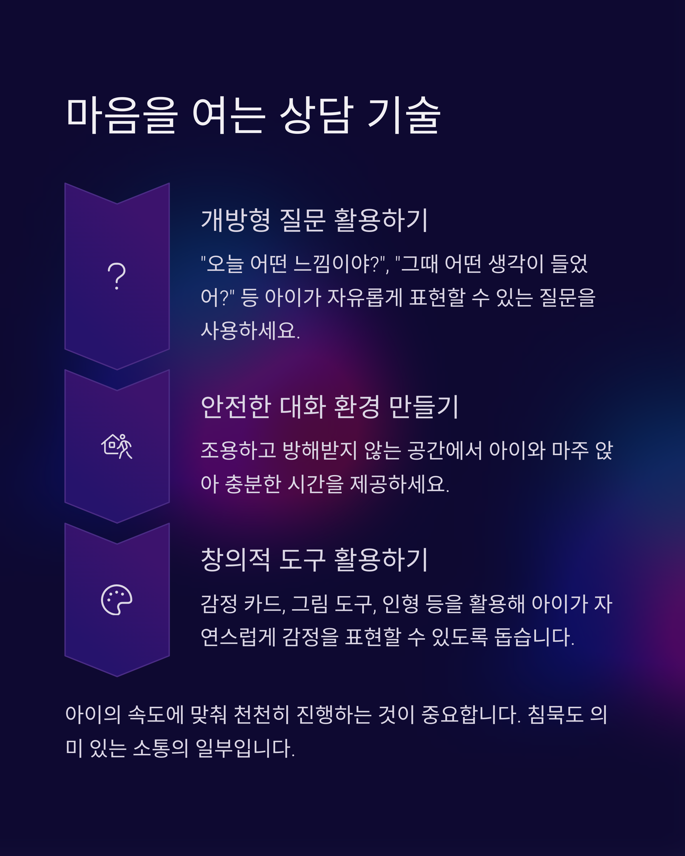또한, 효과적인 상담을 위해 필요한 공감 기술, 질문법, 놀이 도구까지 함께 정리했으니, 상담자분들께 실질적인 도움이 되기를 바랍니다. 아동의 말속 감정에 귀 기울이고, 그들이 스스로 해결책을 찾아가는 여정을 지지하는 상담자가 되어주세요.