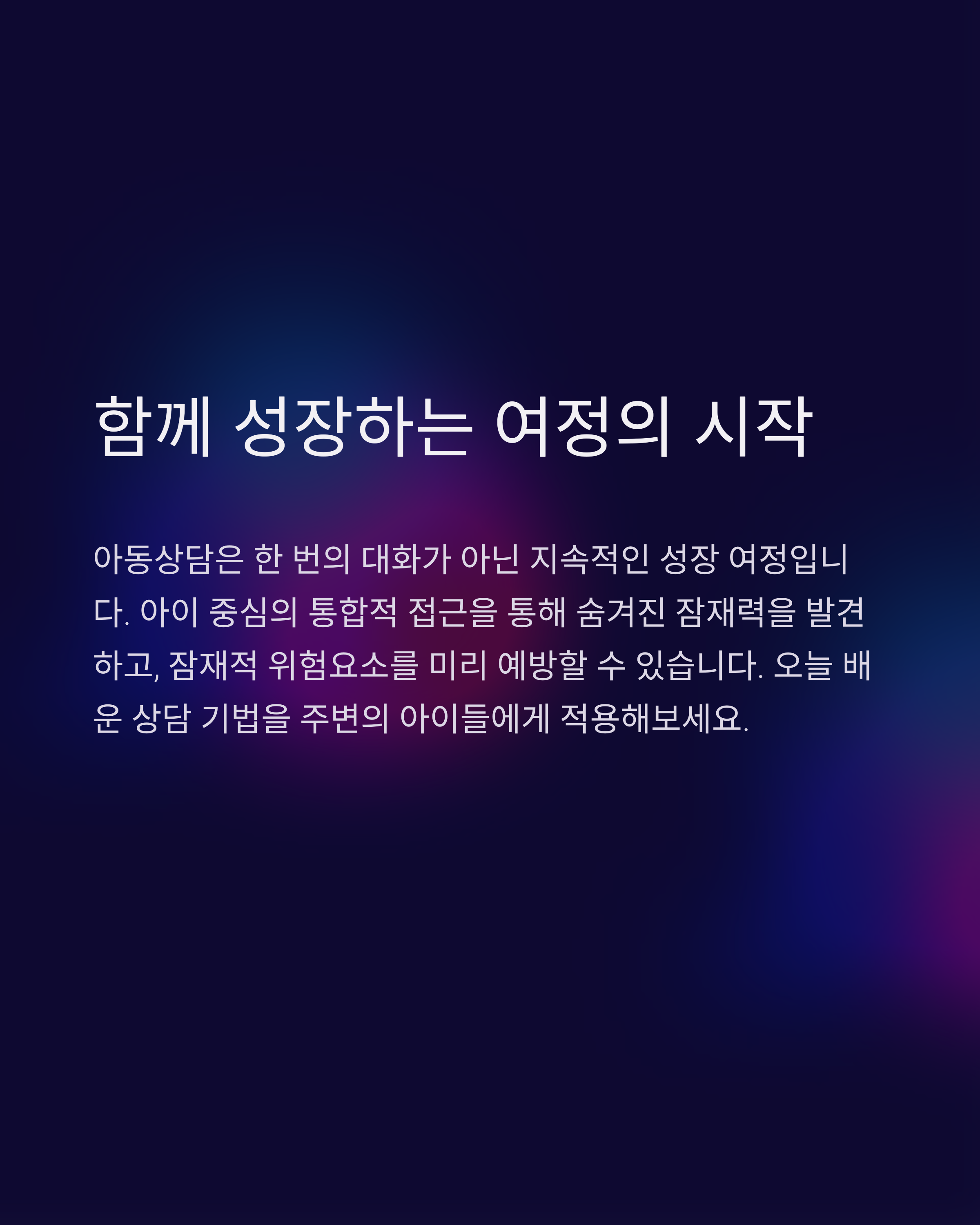 아이 한 명 한 명의 이야기에 귀 기울이며, 그들이 스스로 치유할 수 있는 힘을 가질 수 있도록 돕는 따뜻한 상담자가 되어주세요.