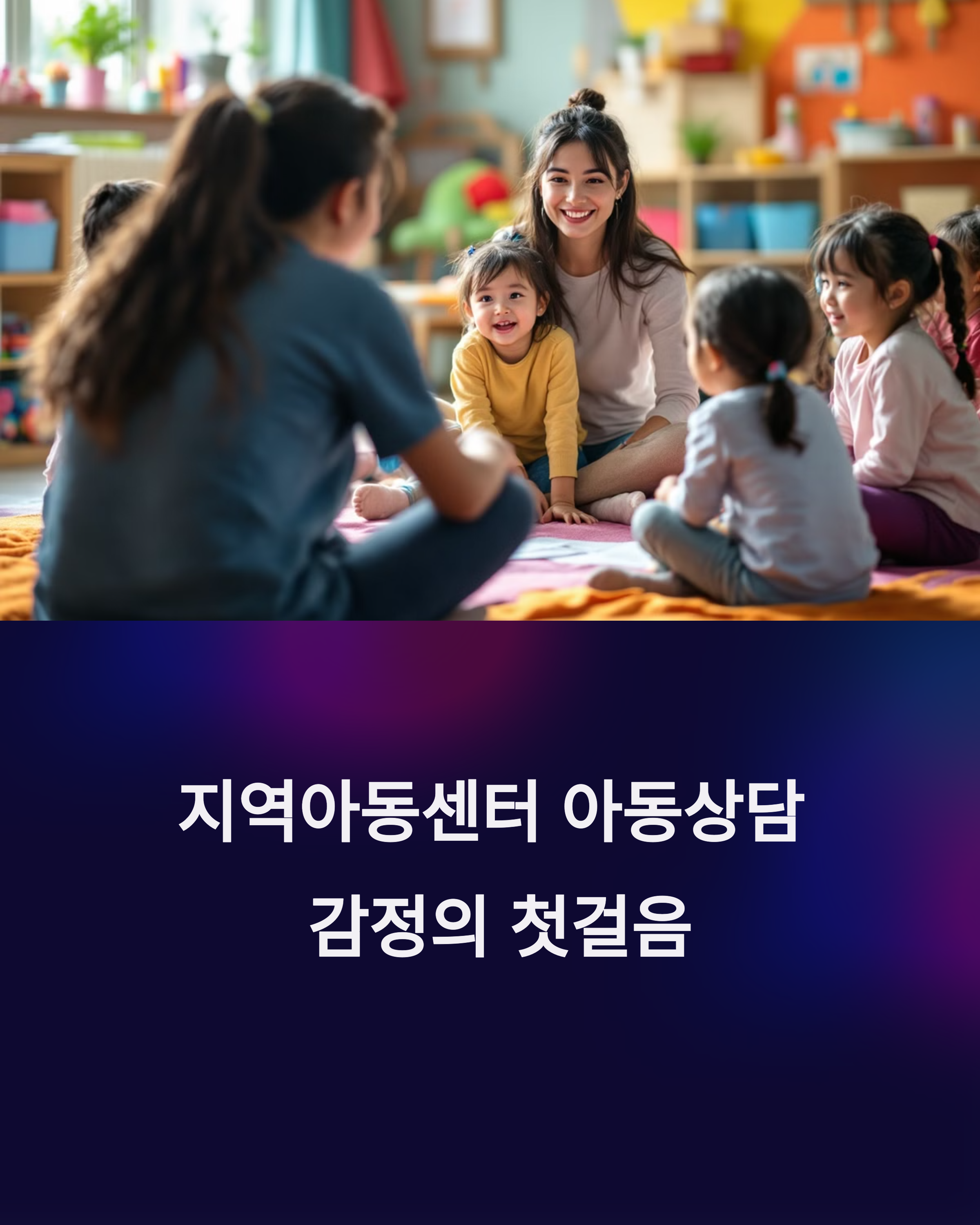 지역아동센터에서의 아동상담은 아이들이 겪는 문제를 직접 해결해 주는 것이 아니라, 아이들이 스스로 감정을 이해하고 건강하게 표현할 수 있도록 돕는 과정입니다.
