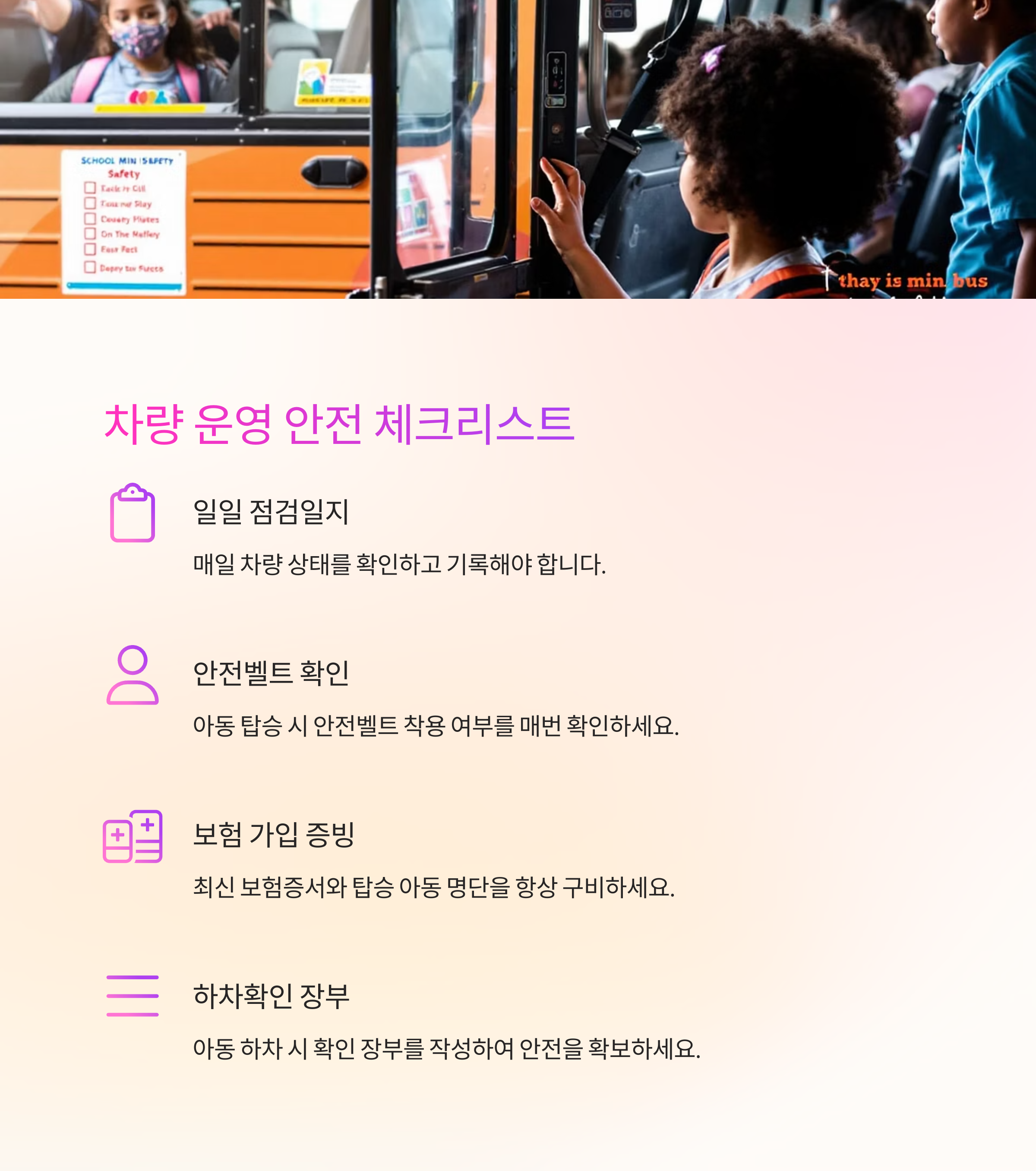 탑승 아동 명단, 하차확인 장부 등이 필수입니다.