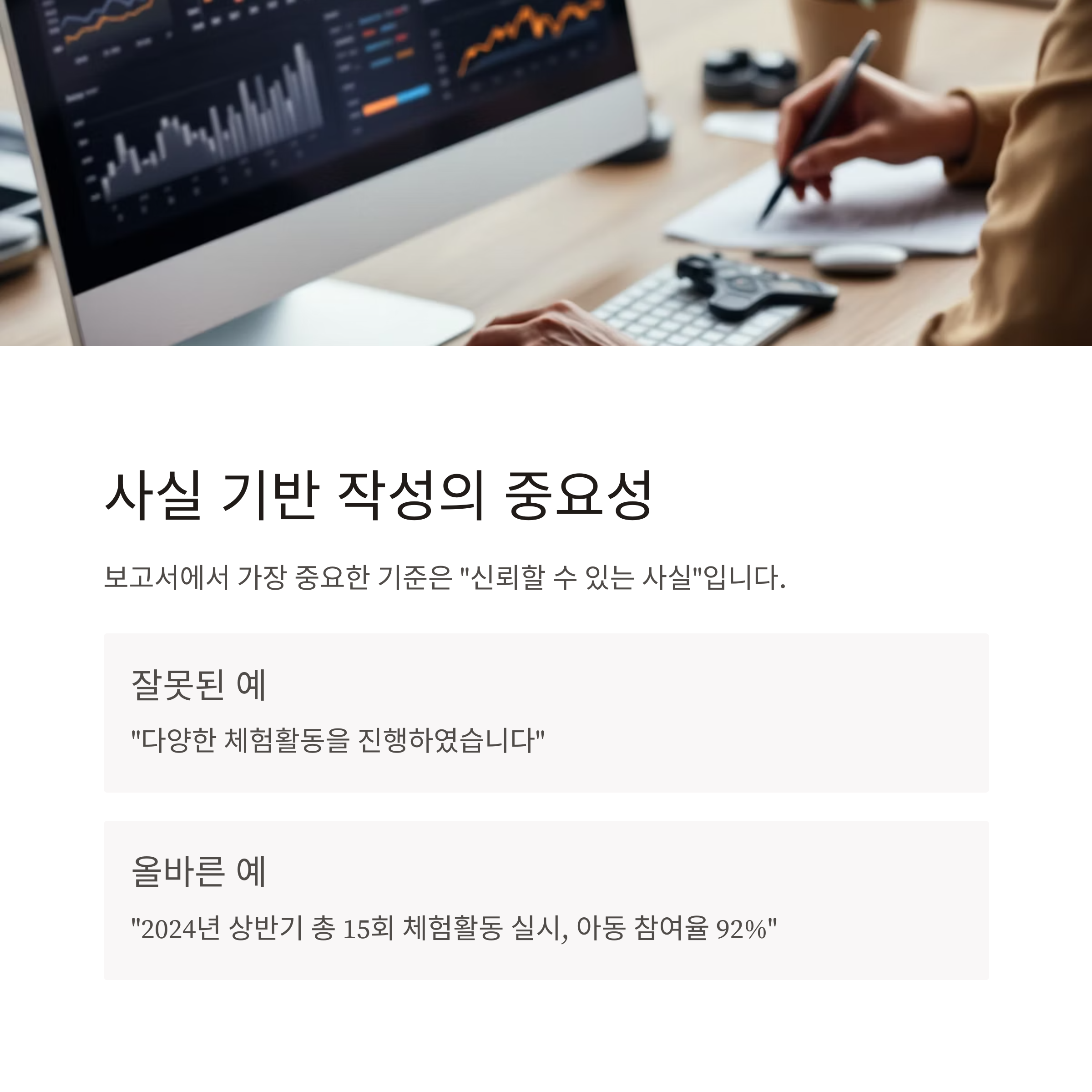 "운영보고서는 문장이 아니라, 자료의 정합성과 신뢰도로 평가받는 문서입니다"