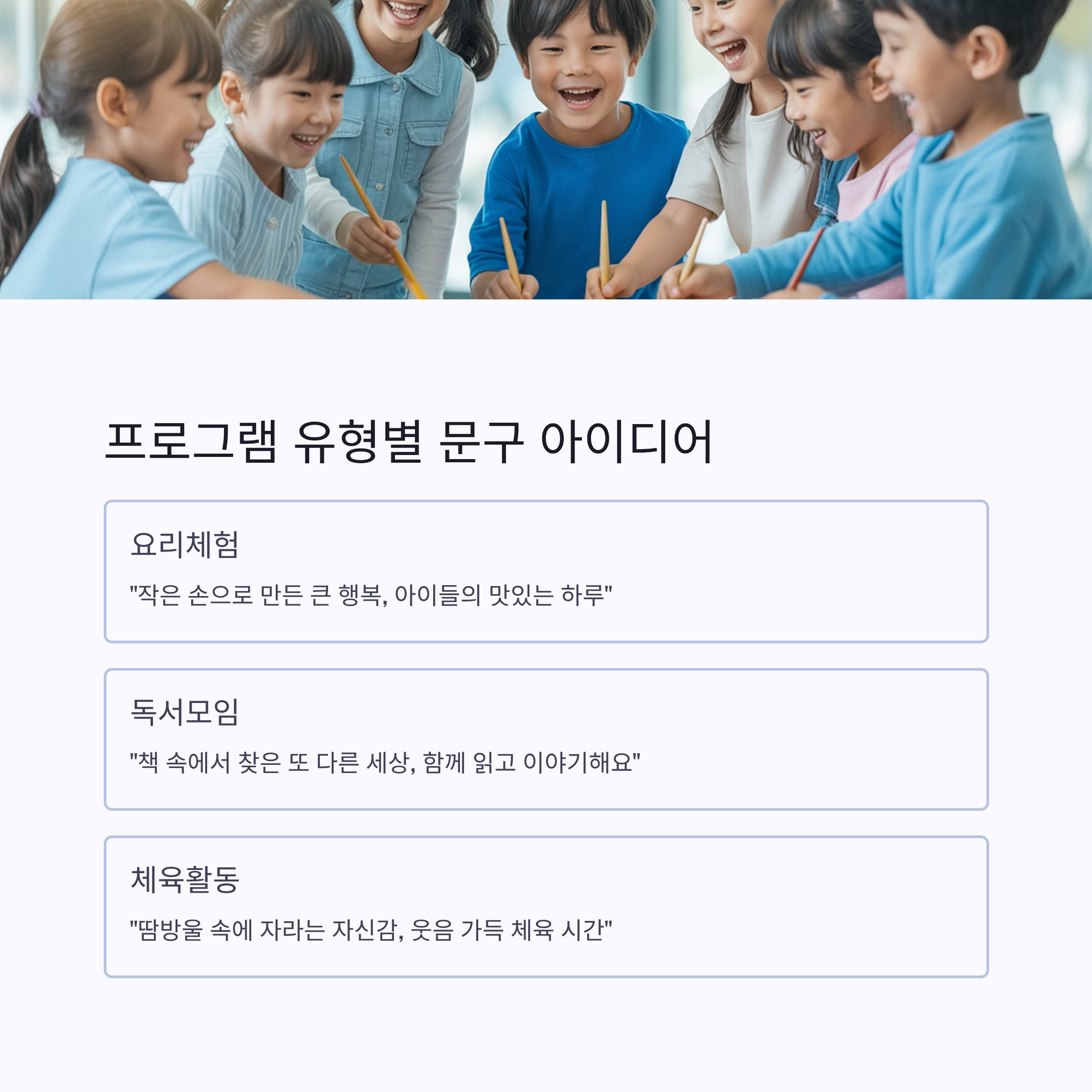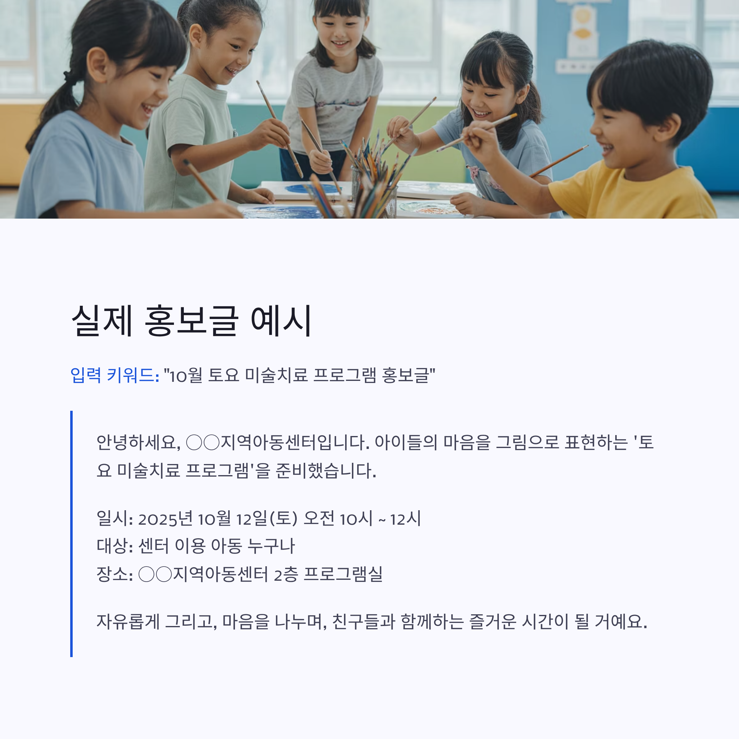 아이들의 웃음과 배움이 가득한 현장, 홍보글 작성도 AI가 도와드립니다