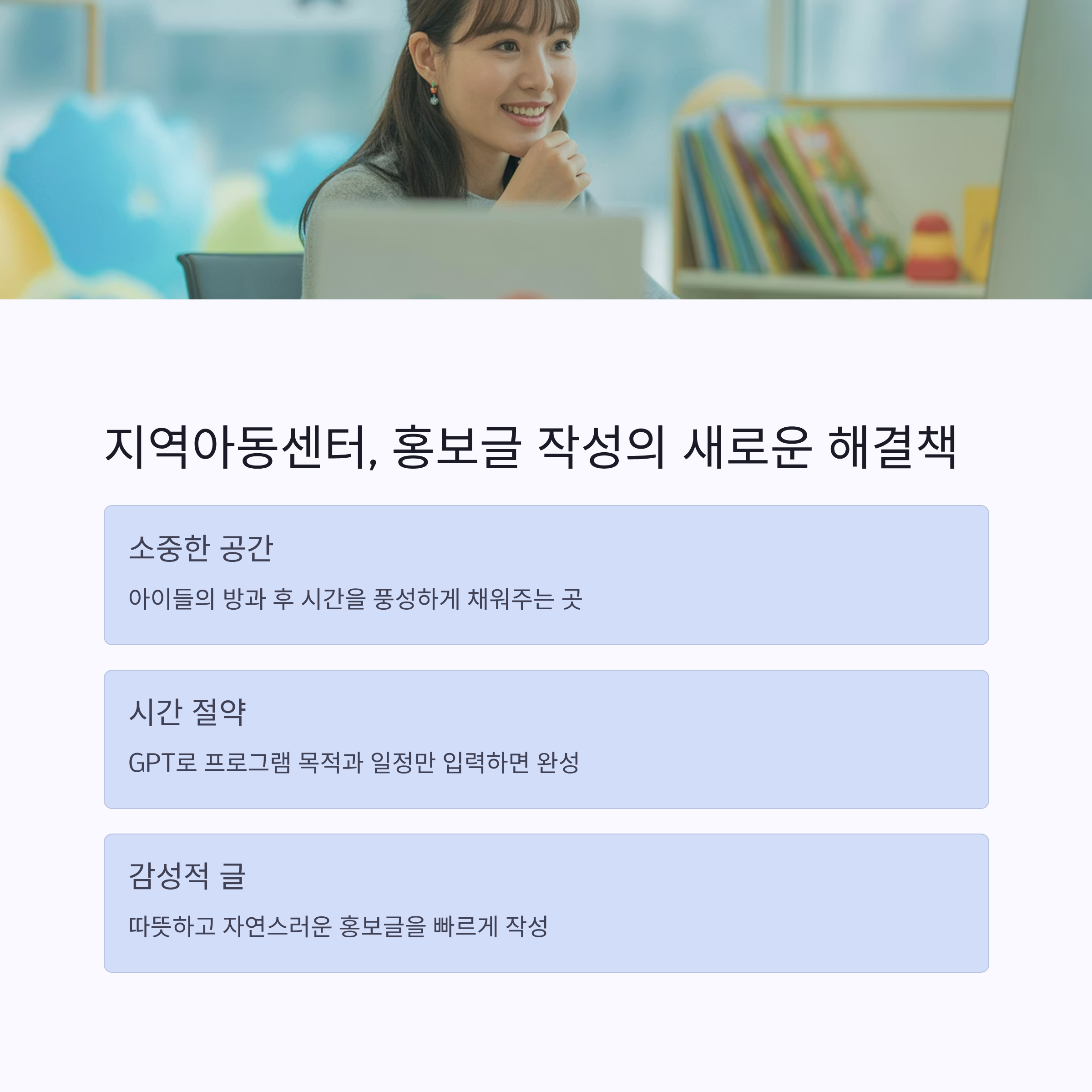 다양한 프로그램이 운영되지만, 이를 알리고 참여를 유도하는 홍보글 작성은 생각보다 시간이 많이 걸리지요.