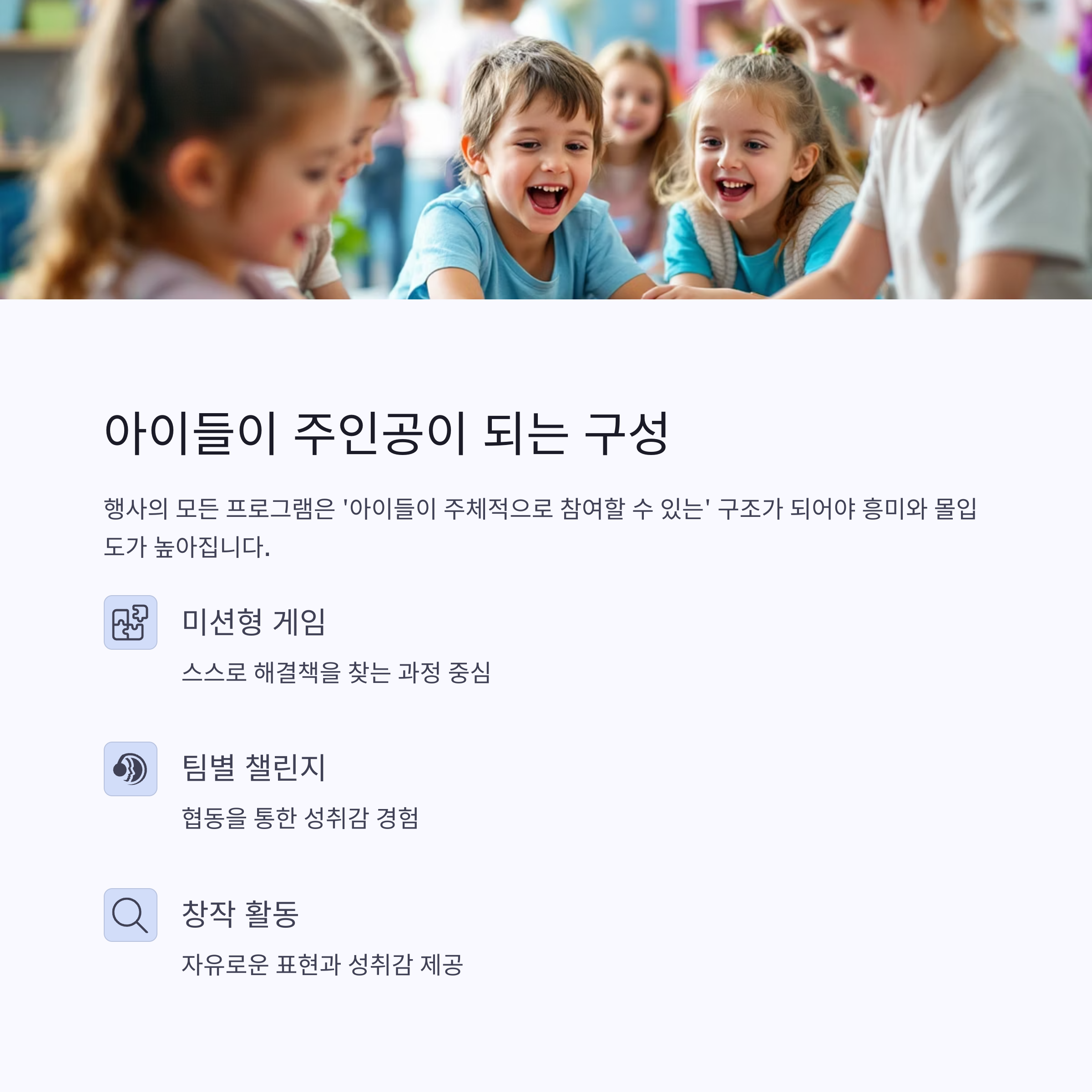 참여자 중심, 아이들이 주인공이 되는 구성