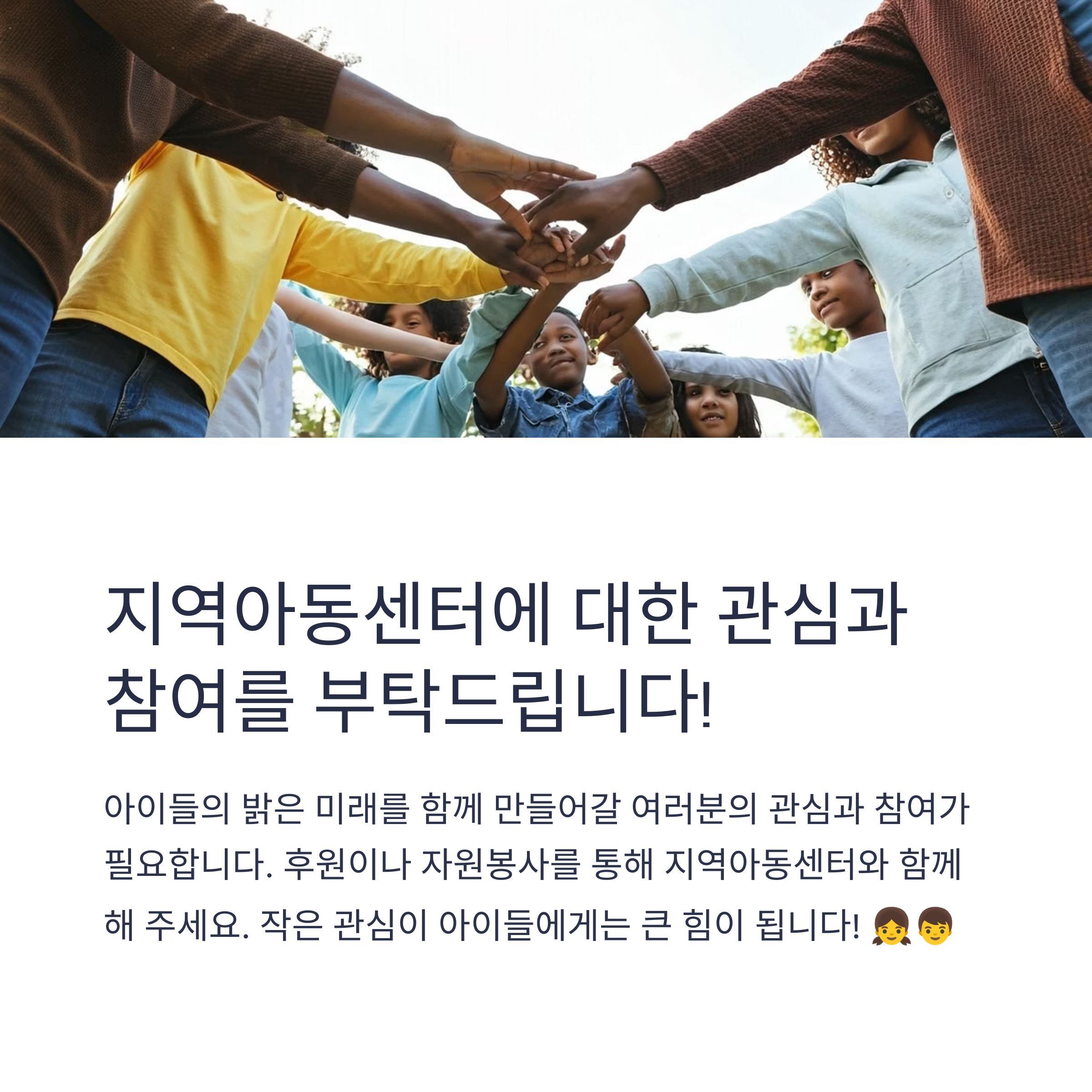 지역아동센터는 지역사회의 중요한 복지 기반 시설로서 정부의 정책과 지원이 절대적입니다.