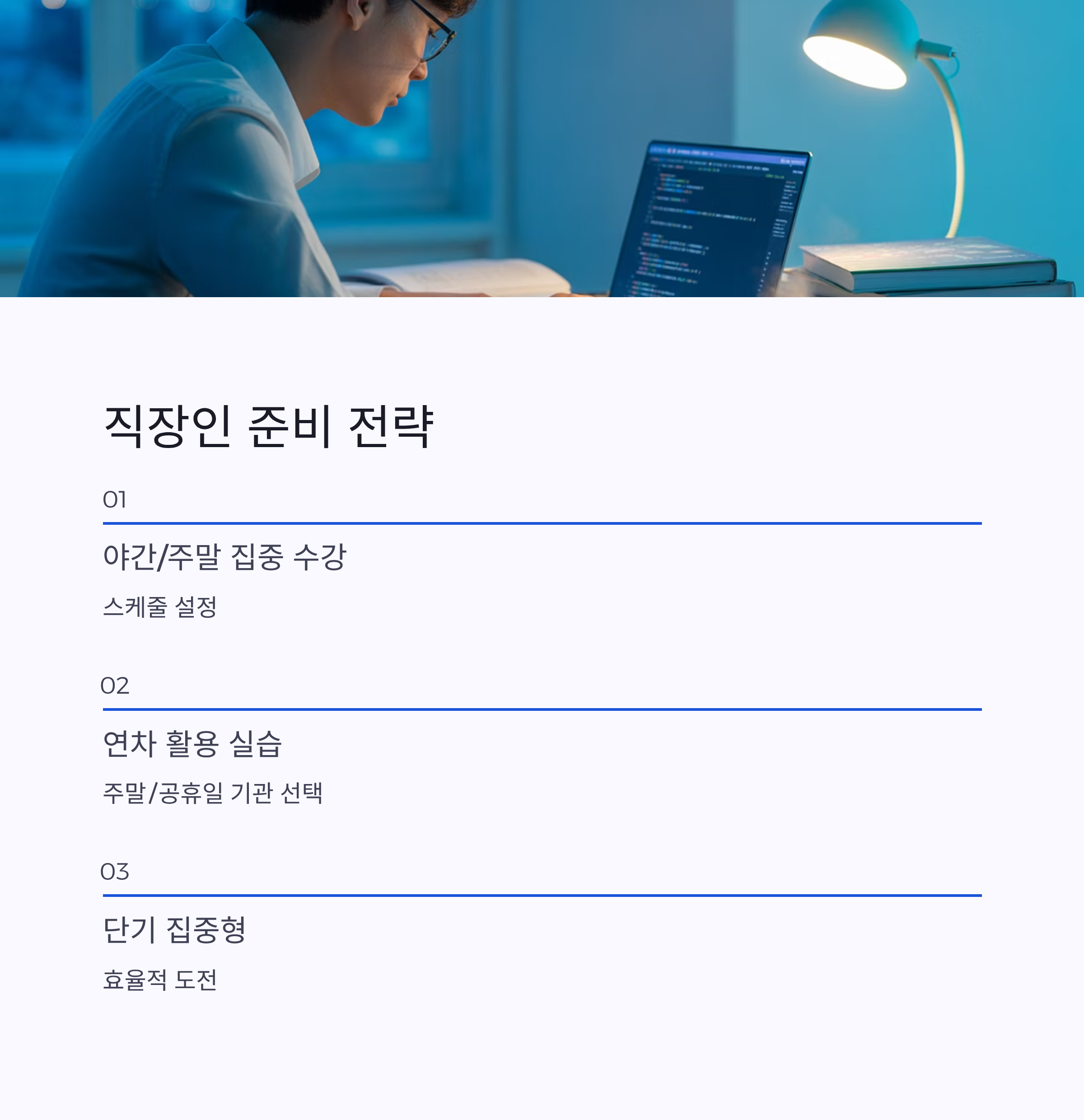 - 야간이나 주말 집중 수강 스케줄 설정