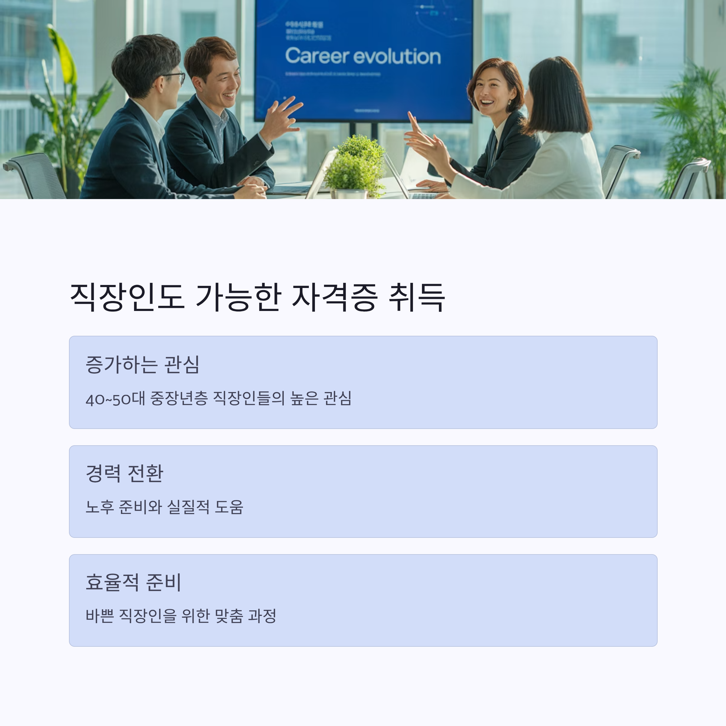 특히 ‘퇴직 후 준비’나 ‘경력 전환’을 목표로 하는 중장년층의 참여가 많습니다.