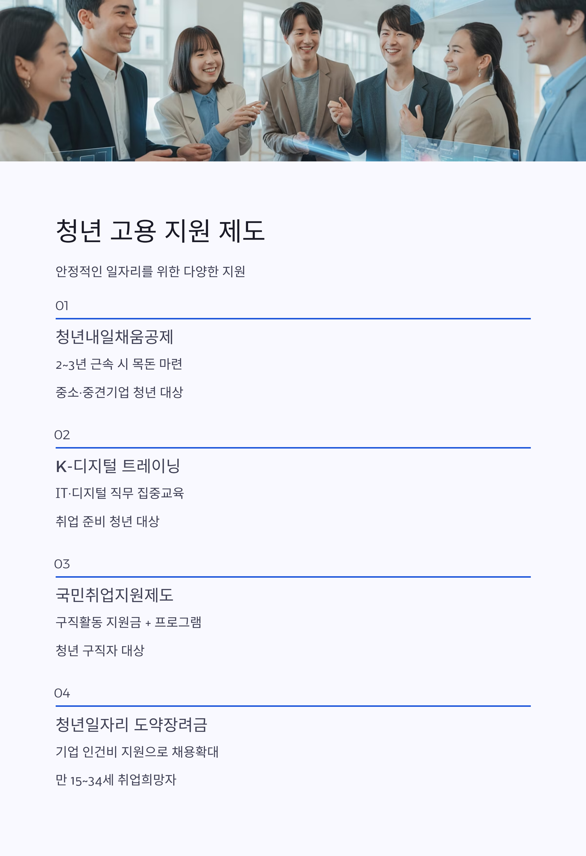 | 국민취업지원제도 | 구직활동 지원금 + 취업 프로그램 | 청년 구직자 |