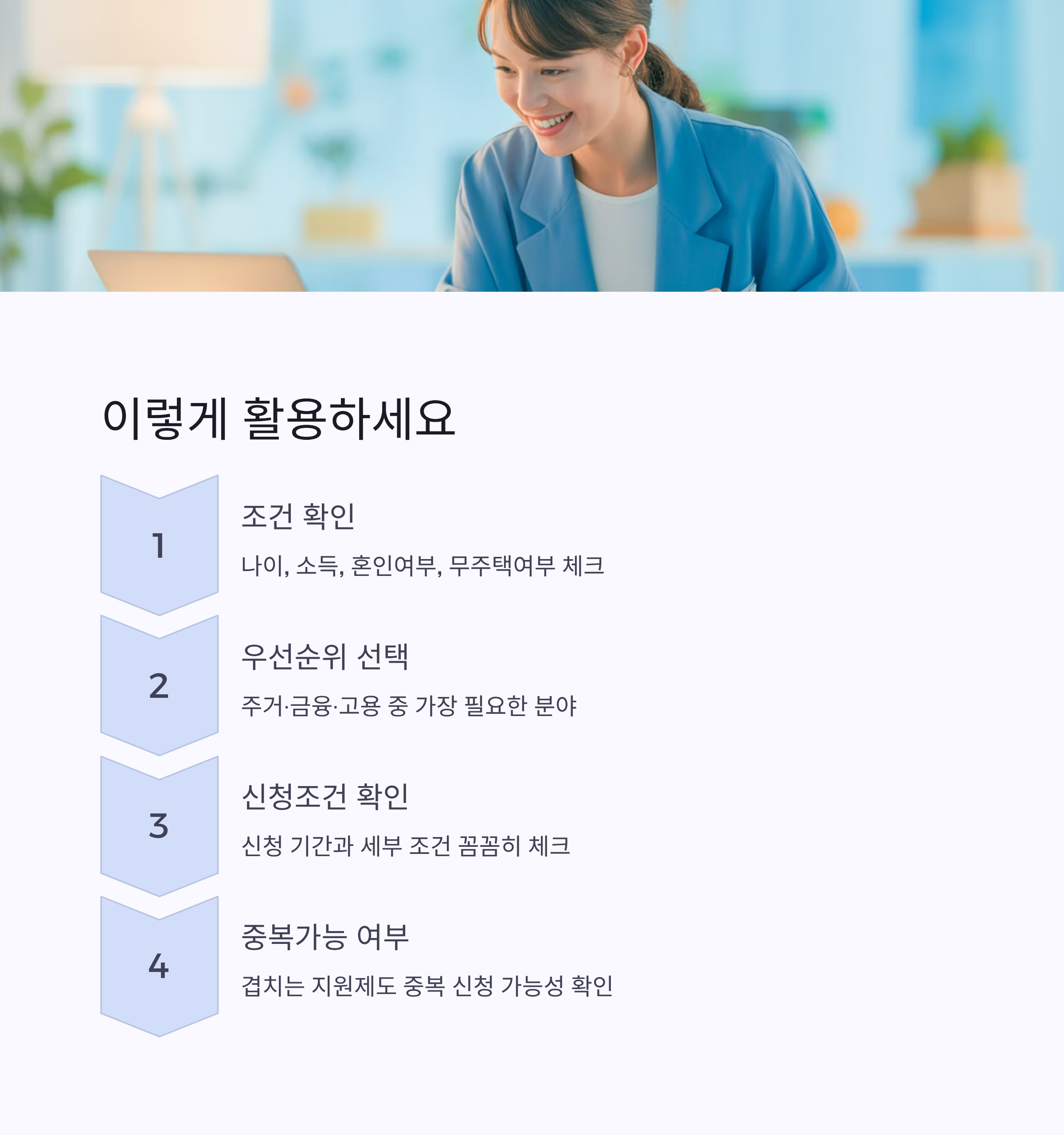 - 겹치는 지원제도가 많으니 ‘중복 가능 여부’를 반드시 확인하세요
