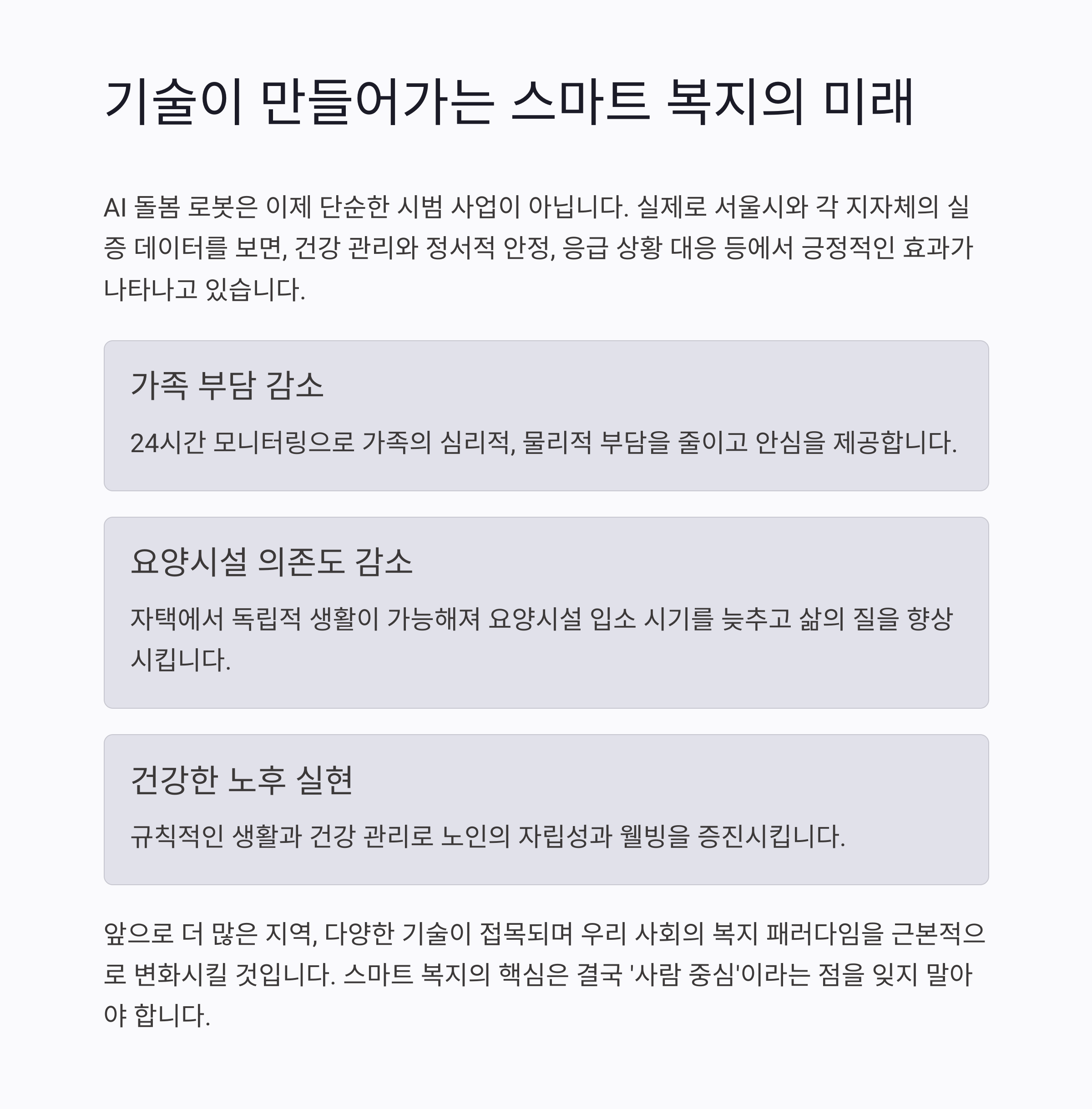 이런 실천을 꾸준히 유지하면, 돌봄 로봇은 단순한 기계가 아닌 신뢰할 수 있는 복지 파트너로 작동하게 됩니다.
