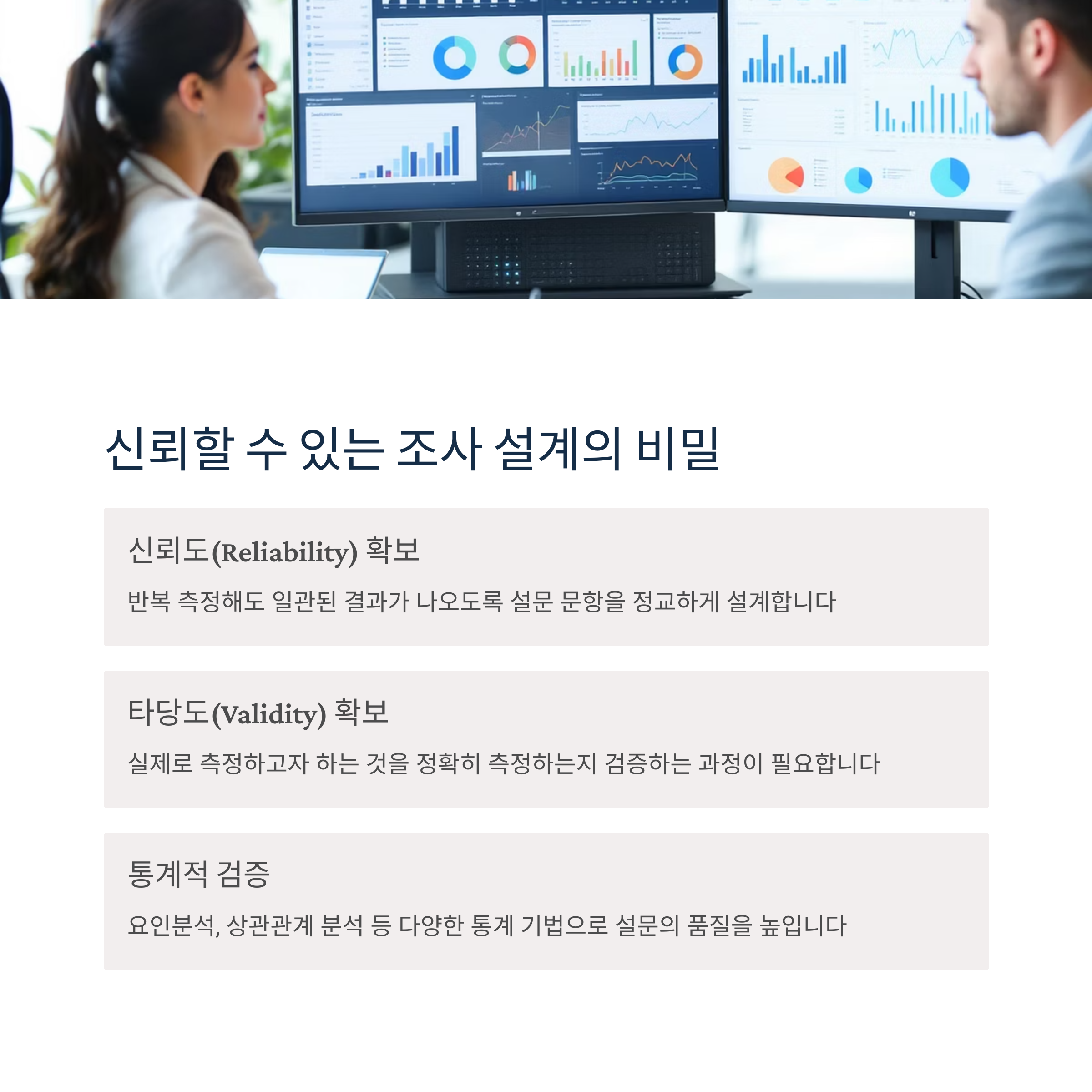 조사 설계의 타당성과 신뢰도는 곧 결과 활용도에 직접 영향을 미칩니다.