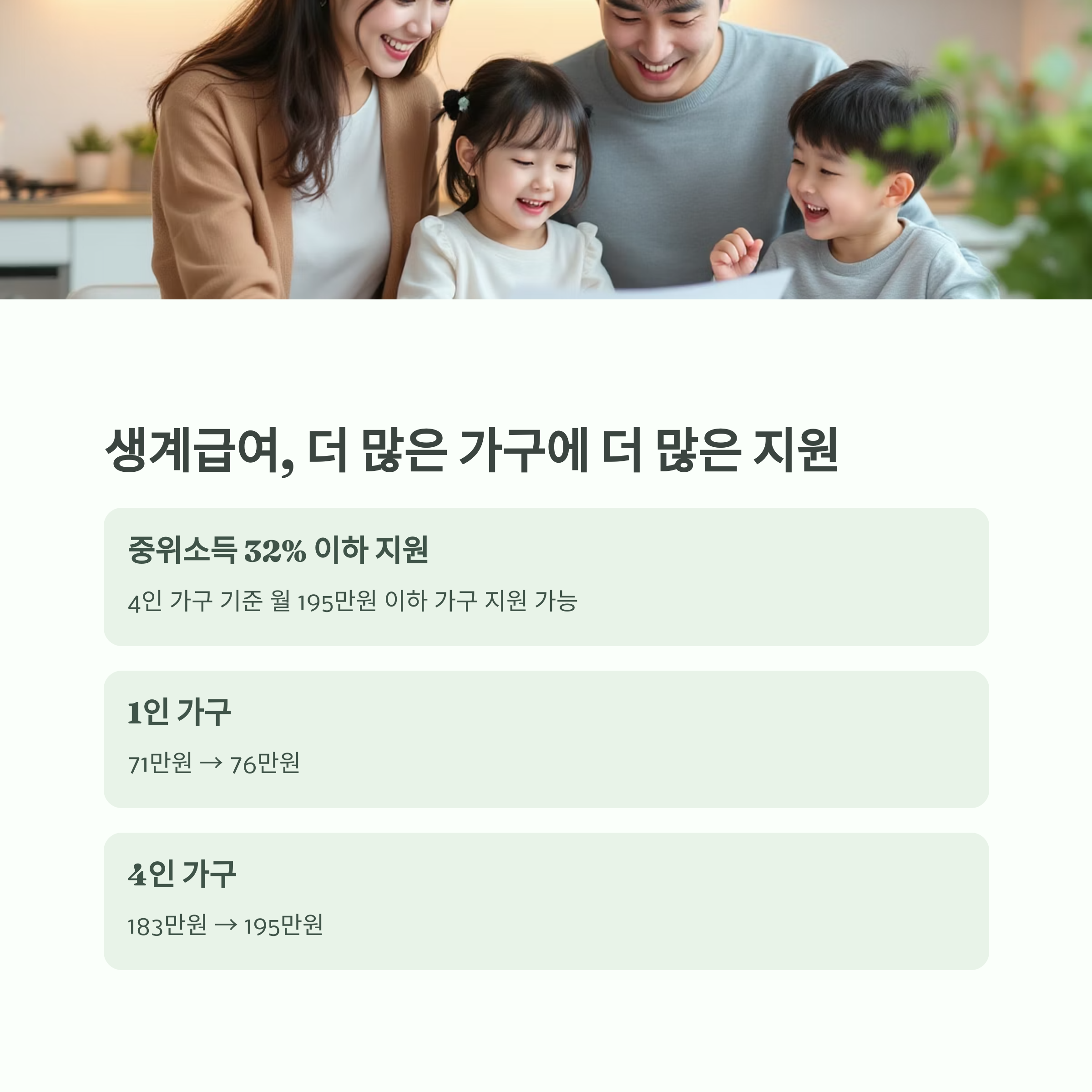 이제 더 많은 가구가 생계급여와 의료급여 같은 필수 지원을 받을 수 있습니다.