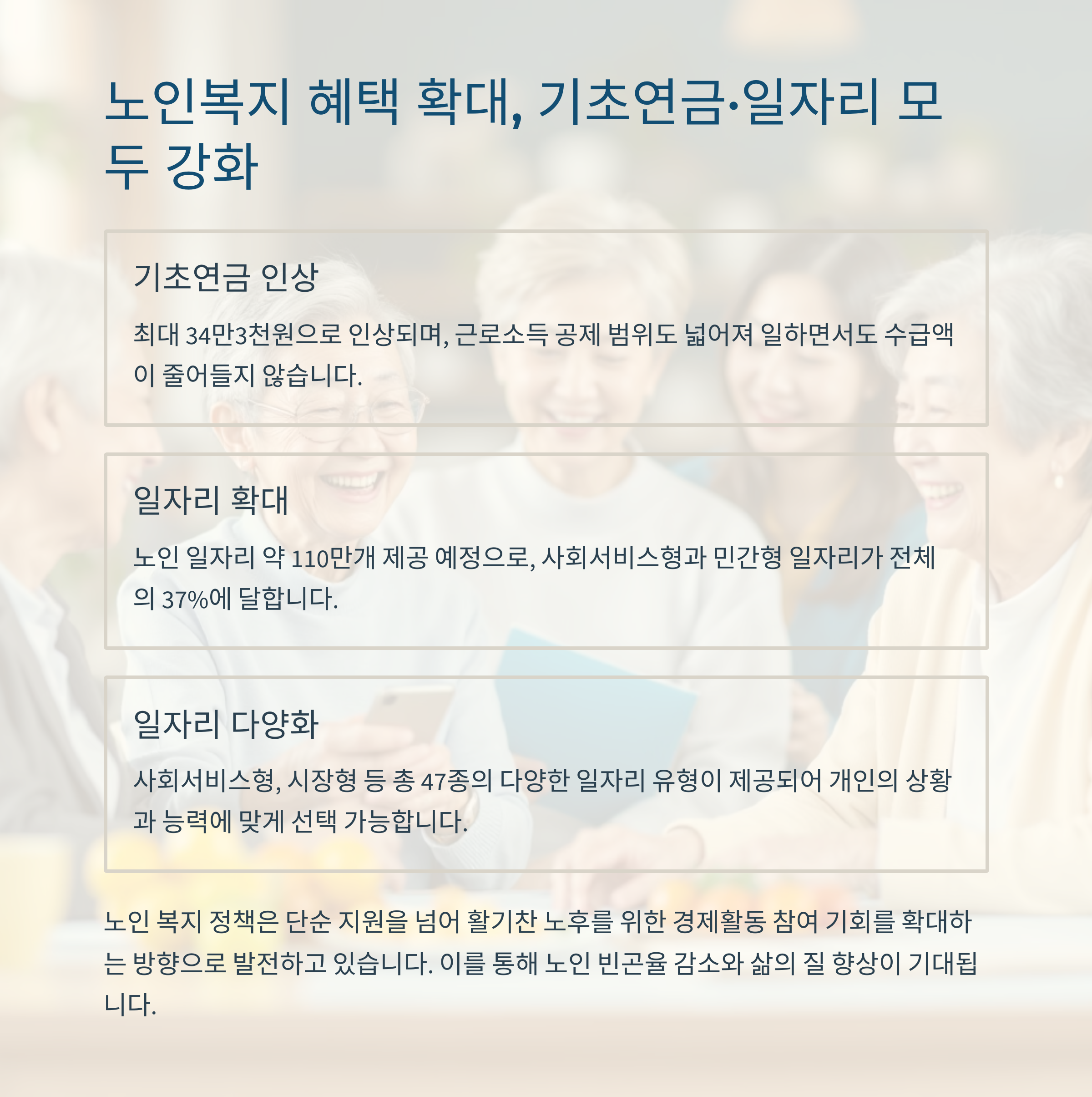 노인복지 혜택 확대, 기초연금·일자리 모두 강화