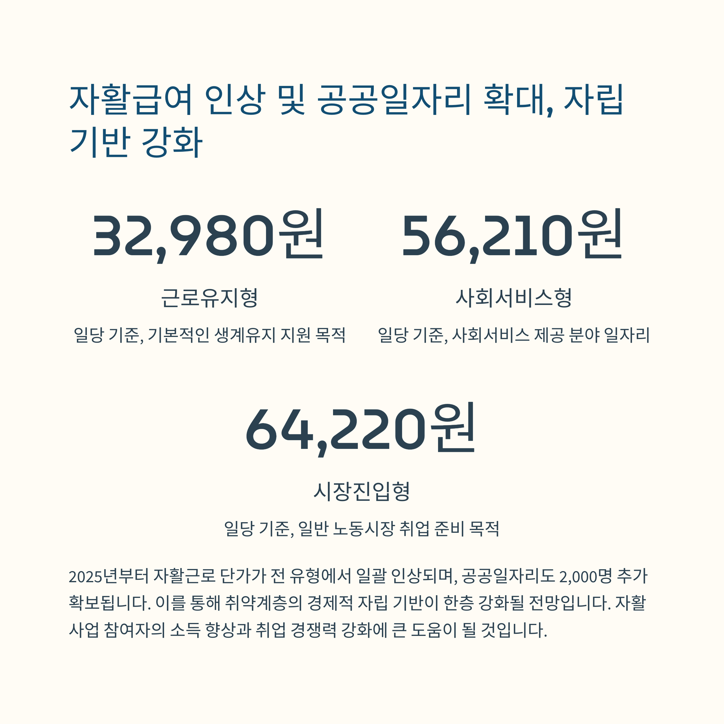 자활급여 인상 및 공공일자리 확대, 자립 기반 강화