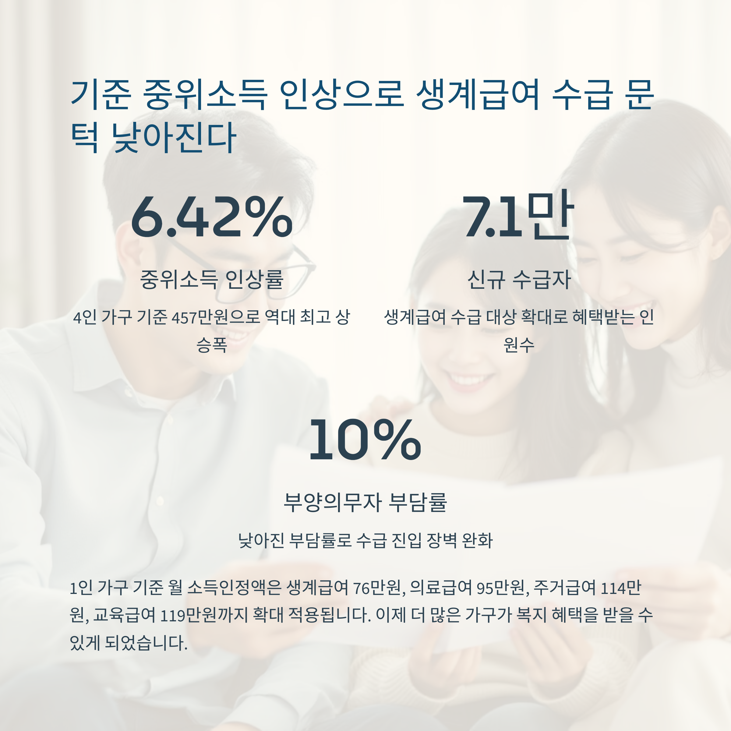 기준 중위소득 인상으로 생계급여 수급 문턱 낮아진다