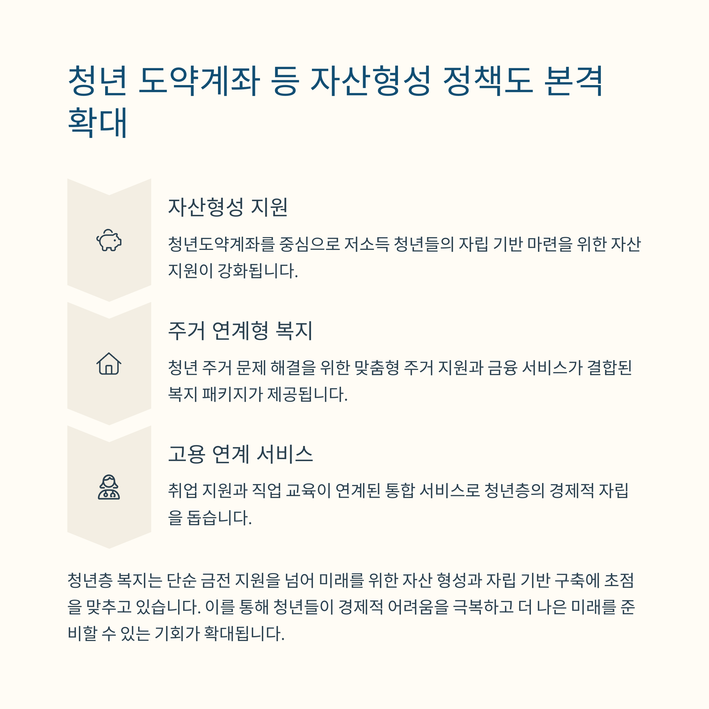 청년도약계좌를 중심으로 한 청년 자산형성 지원도 확대됩니다.