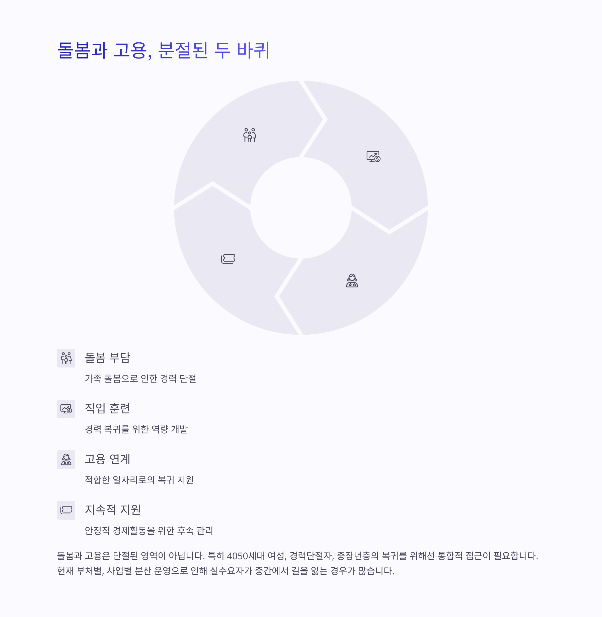돌봄과 고용은 단절된 영역이 아닙니다.