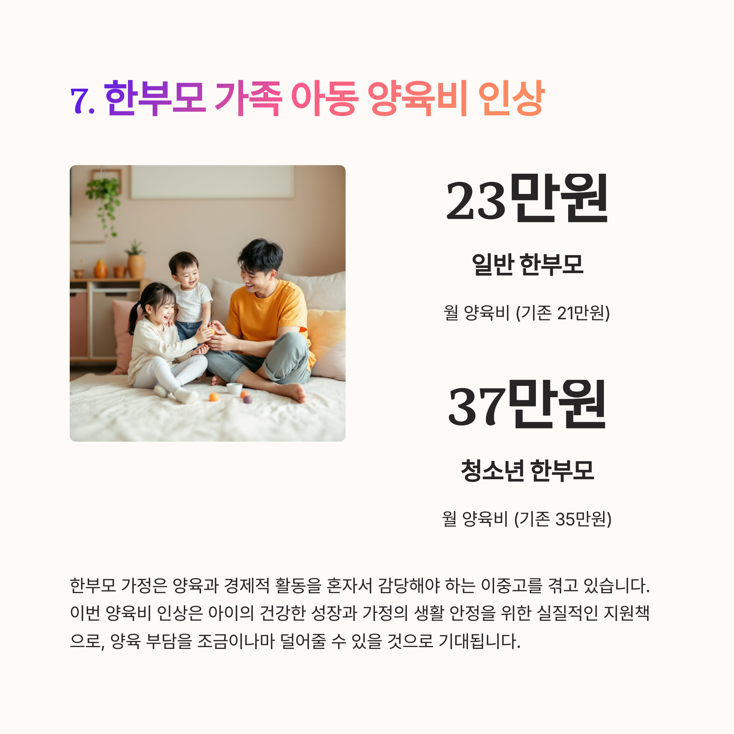 아이의 양육과 생활 안정을 위한 실질적 지원입니다.