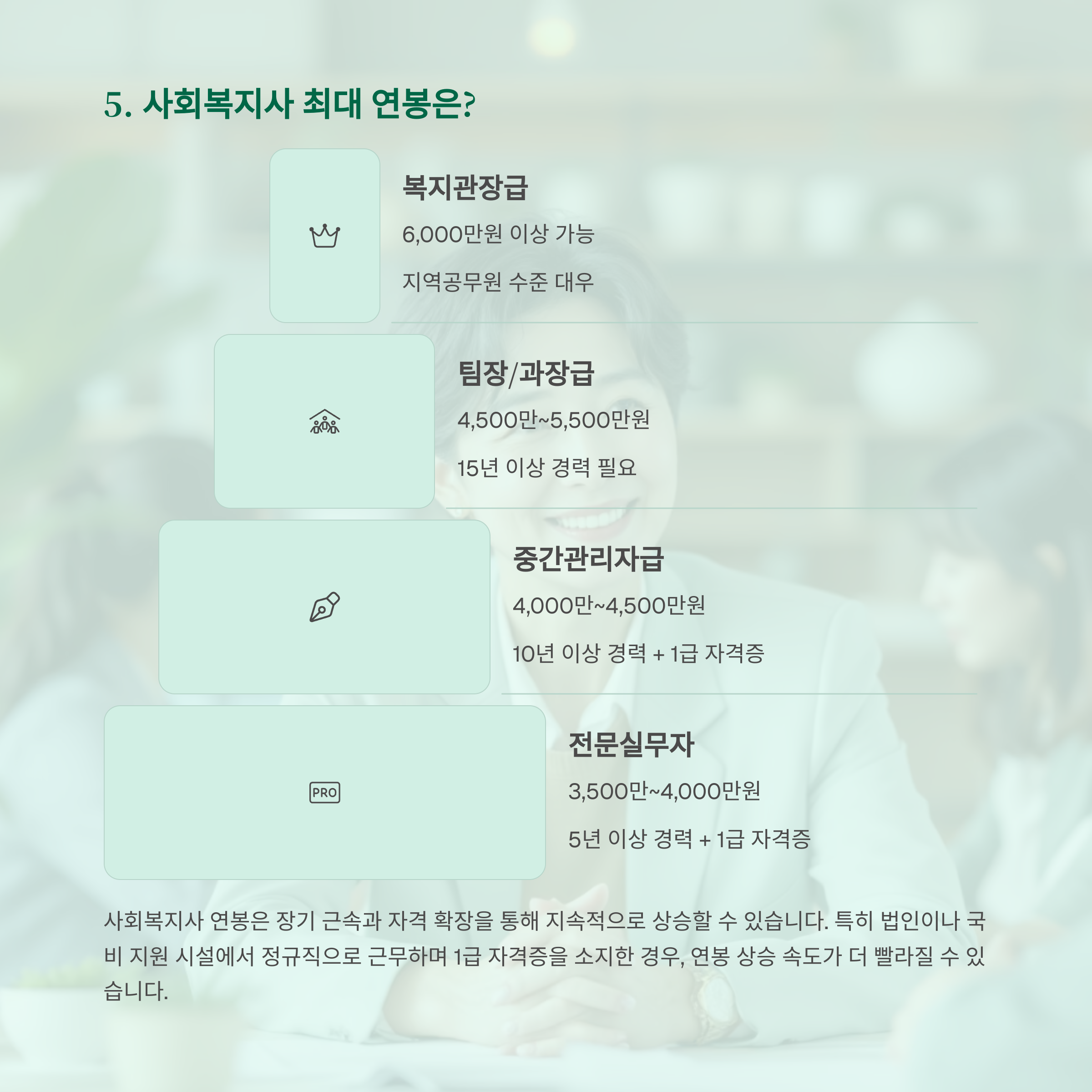 5. 사회복지사 연봉, 얼마나 까지 오를 수 있나?