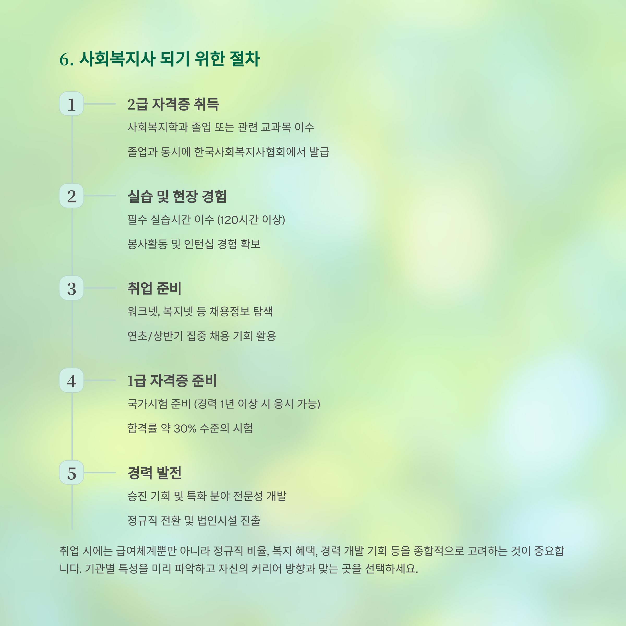 6. 사회복지사 되기 위한 실질 절차는?