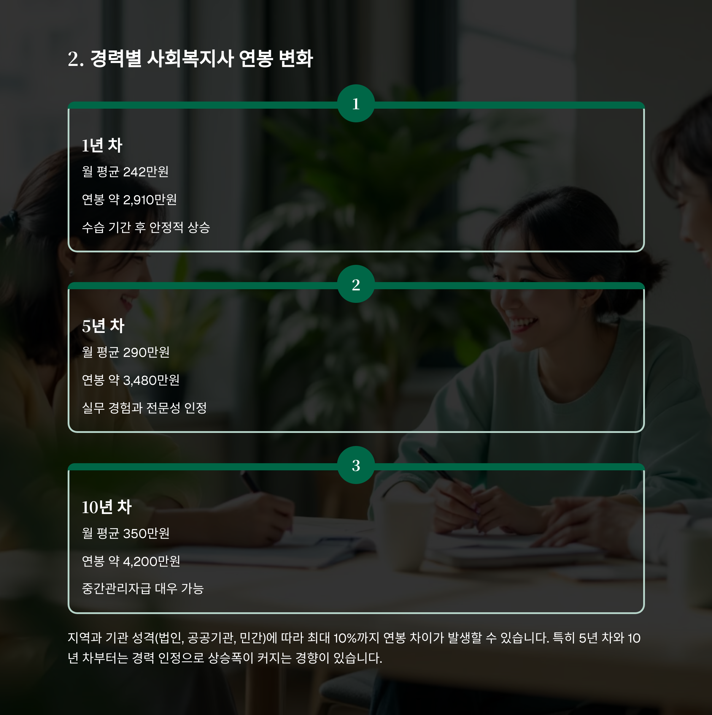 사회복지사 연봉은 경력에 따라 명확한 상승폭이 있습니다.