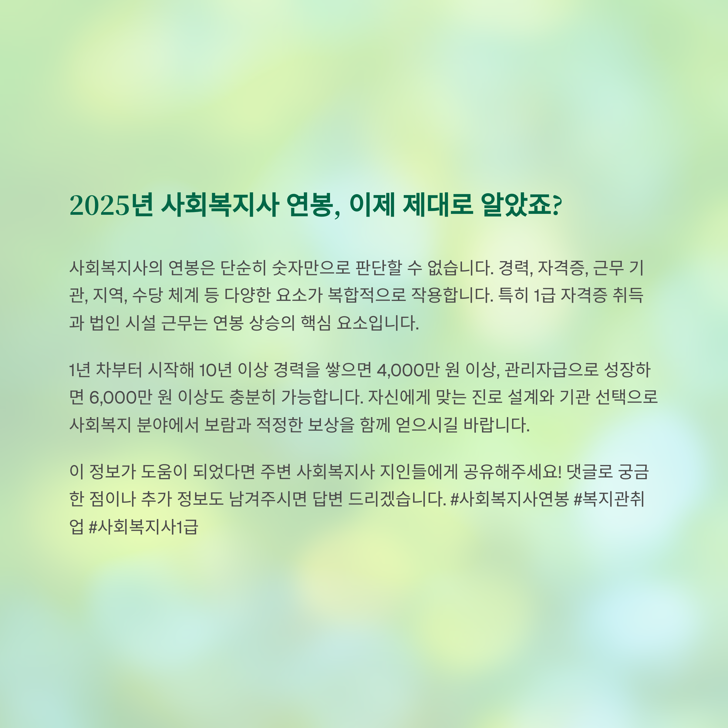 2025년 기준으로 사회복지사 연봉은 얼마나 될까요?