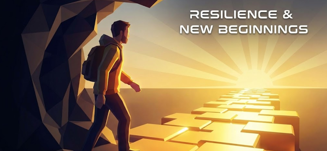 넘어진 무릎을 털고 일어나 빛을 향해 걷는 남성