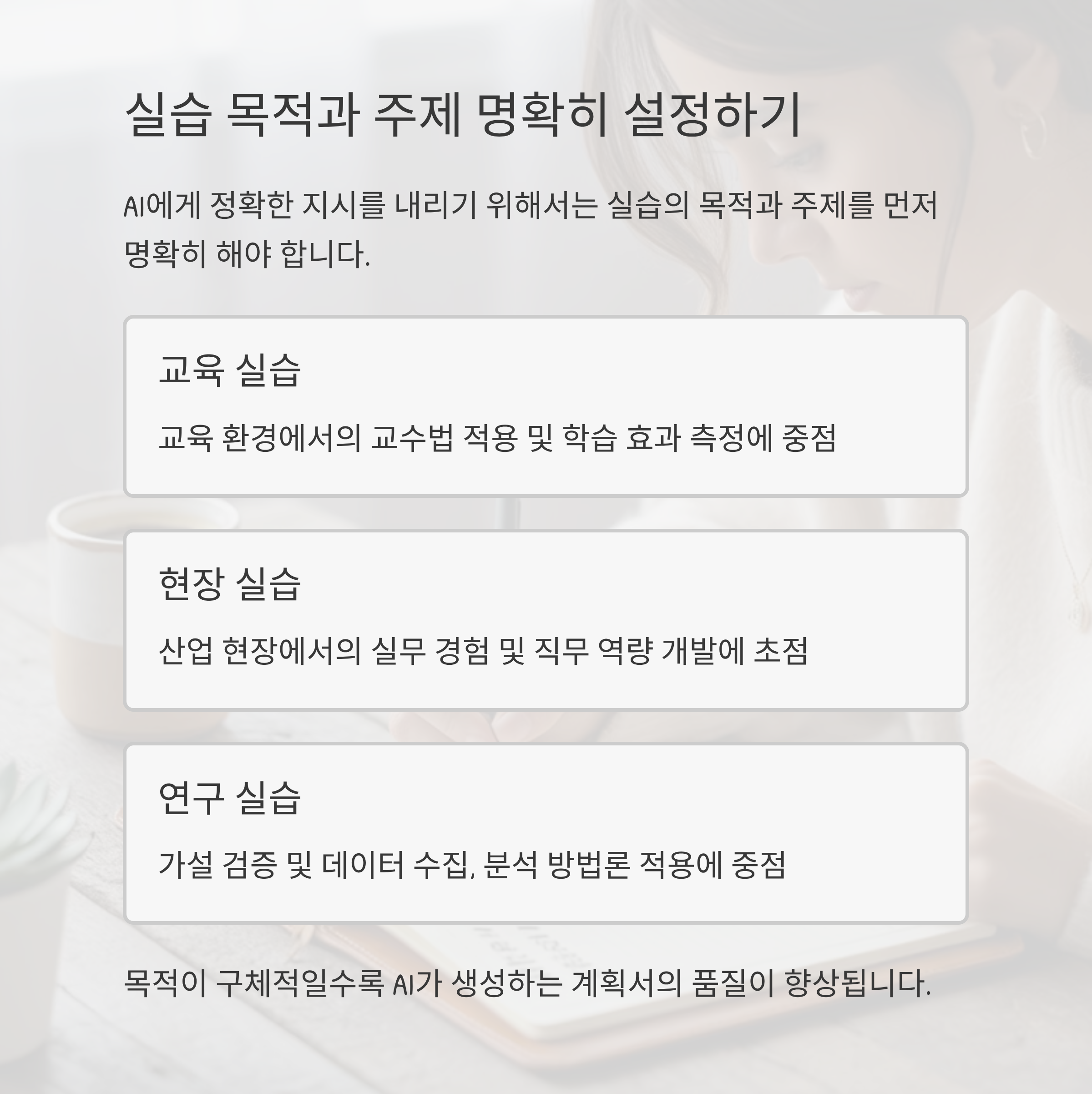 유형별로 목표가 다르므로 이를 AI에 정확히 전달하는 것이 중요합니다.