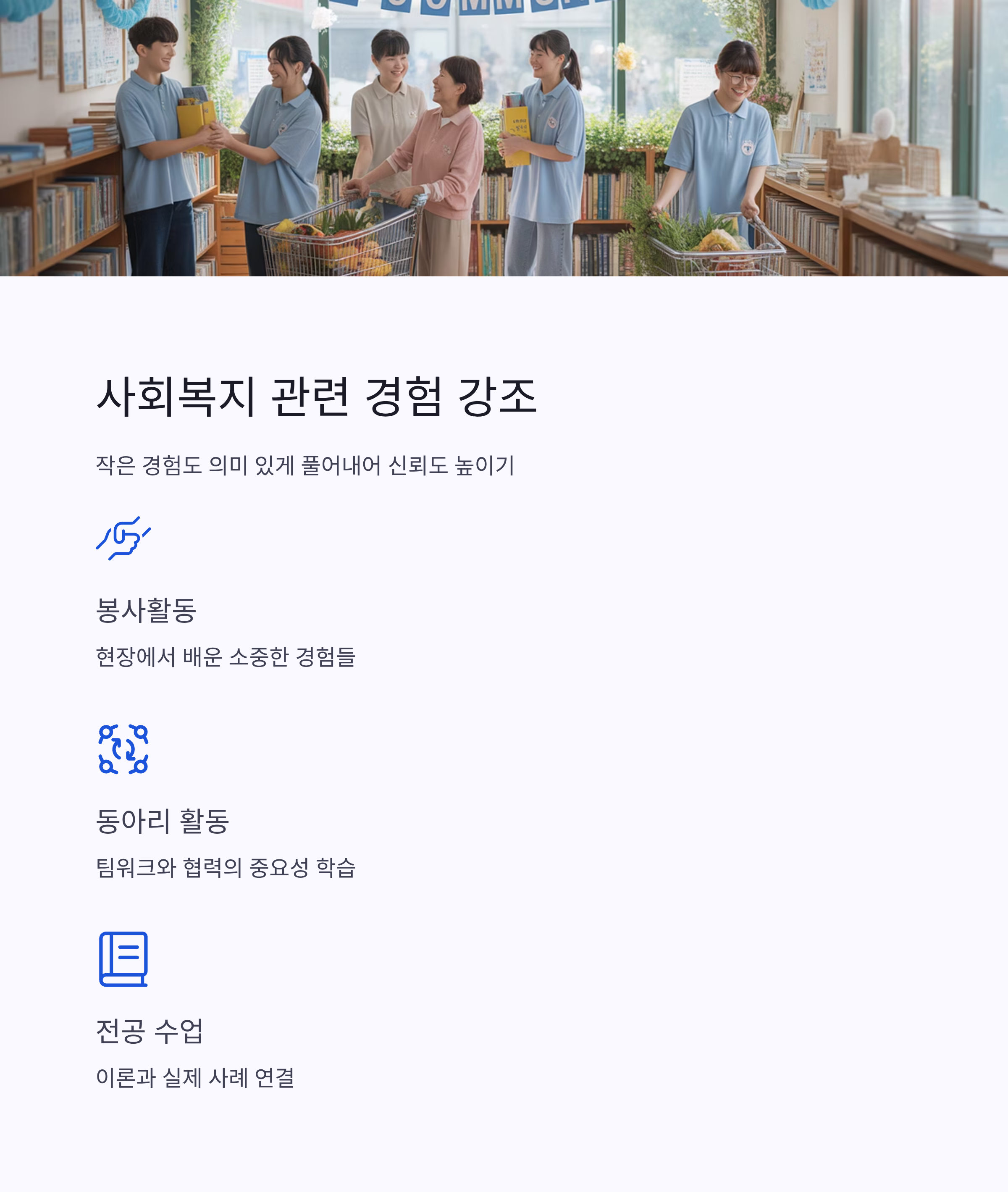 사회복지 관련 경험은 꼭 강조하세요